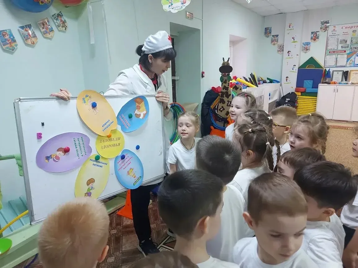 Дети с интересом слушали советы доктора, играли в весёлые подвижные игры и обещали всегда быть здоровыми и бодрыми!