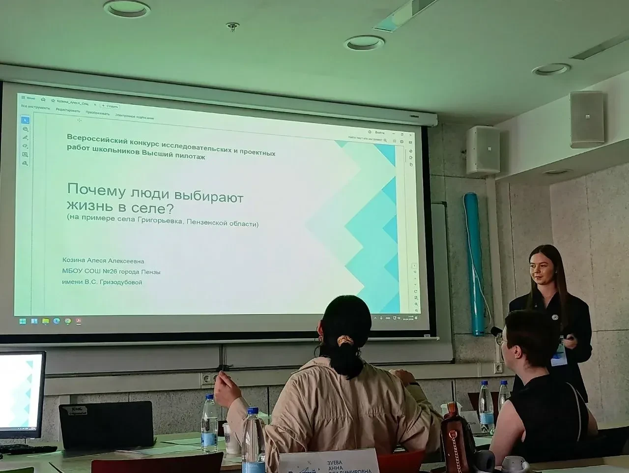 Алеся представила на суд жюри свое исследование на тему «Почему люди выбирают жизнь в селе?». Работа была основана на глубоком полевом исследовании, включавшем поездки в село Григорьевка Тамалинского района, проведение глубинных интервью с местными жителями и анализ установок молодежи. Научным руководителем проекта выступила учитель английского языка Книгина Татьяна Александровна.