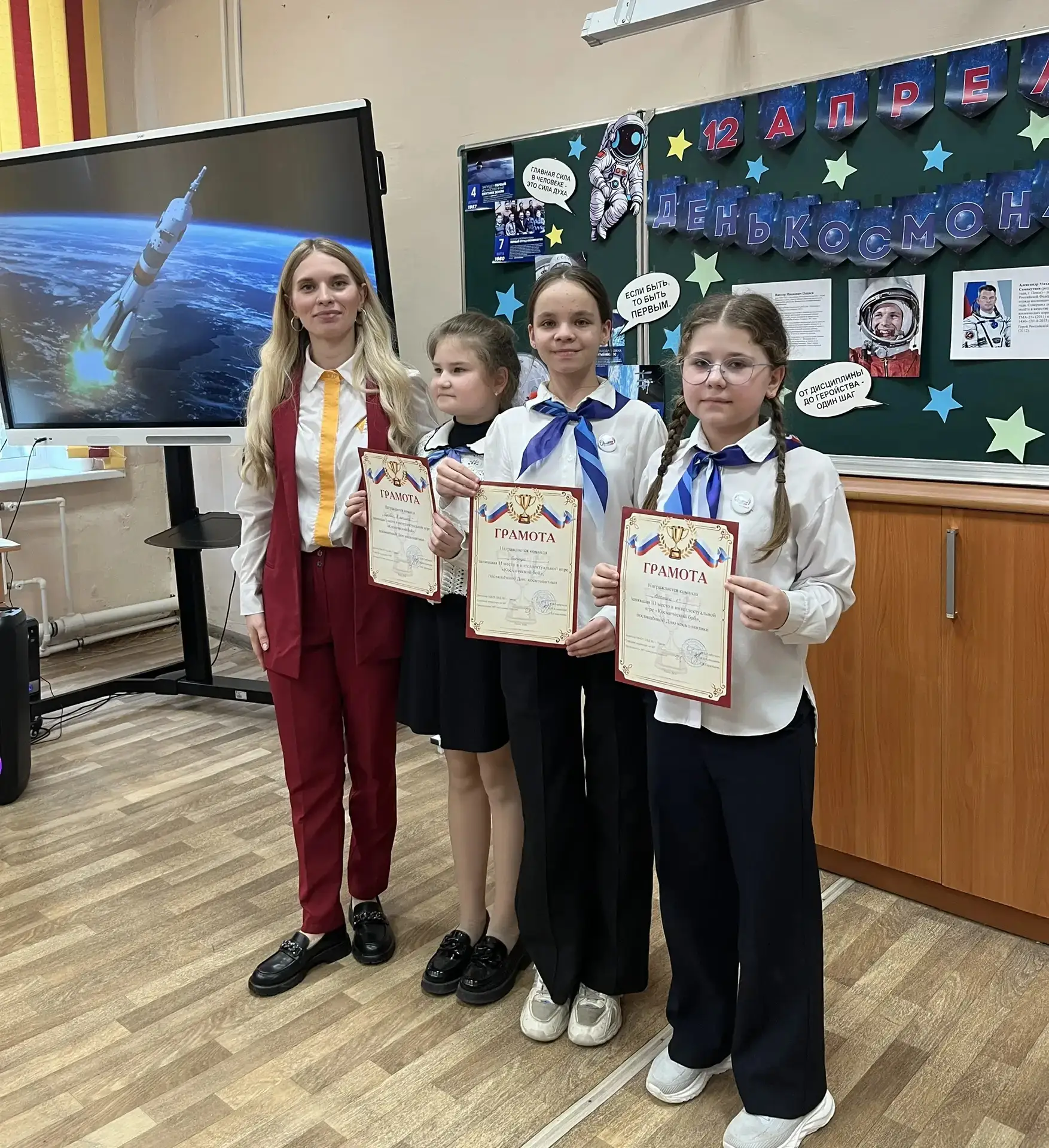 В рекреациях лицея силами детей были устроены тематические локации, посвященные Дню космонавтики. Участник конкурса, советник директора по воспитанию Мария Кувшинова, провела для учащихся 4 «А» класса интерактивную игру «Космический бой». В ходе игры ребята расширили свои познания о космическом пространстве и первооткрывателях, системе отбора космонавтов, героях-космонавтах своей малой родины, первых животных, покоривших космос, и ученых в области космонавтики.
