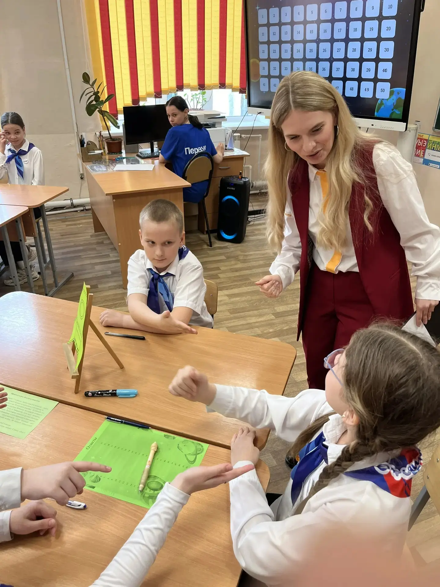 Занятие началось с актуализации знаний: ребята вспомнили основные понятия о строении атома и его ядра, повторили термины «массовое число» и «зарядовое число». Для проверки усвоенного материала ученики выполнили небольшой тест, который помог настроиться на изучение новой темы.