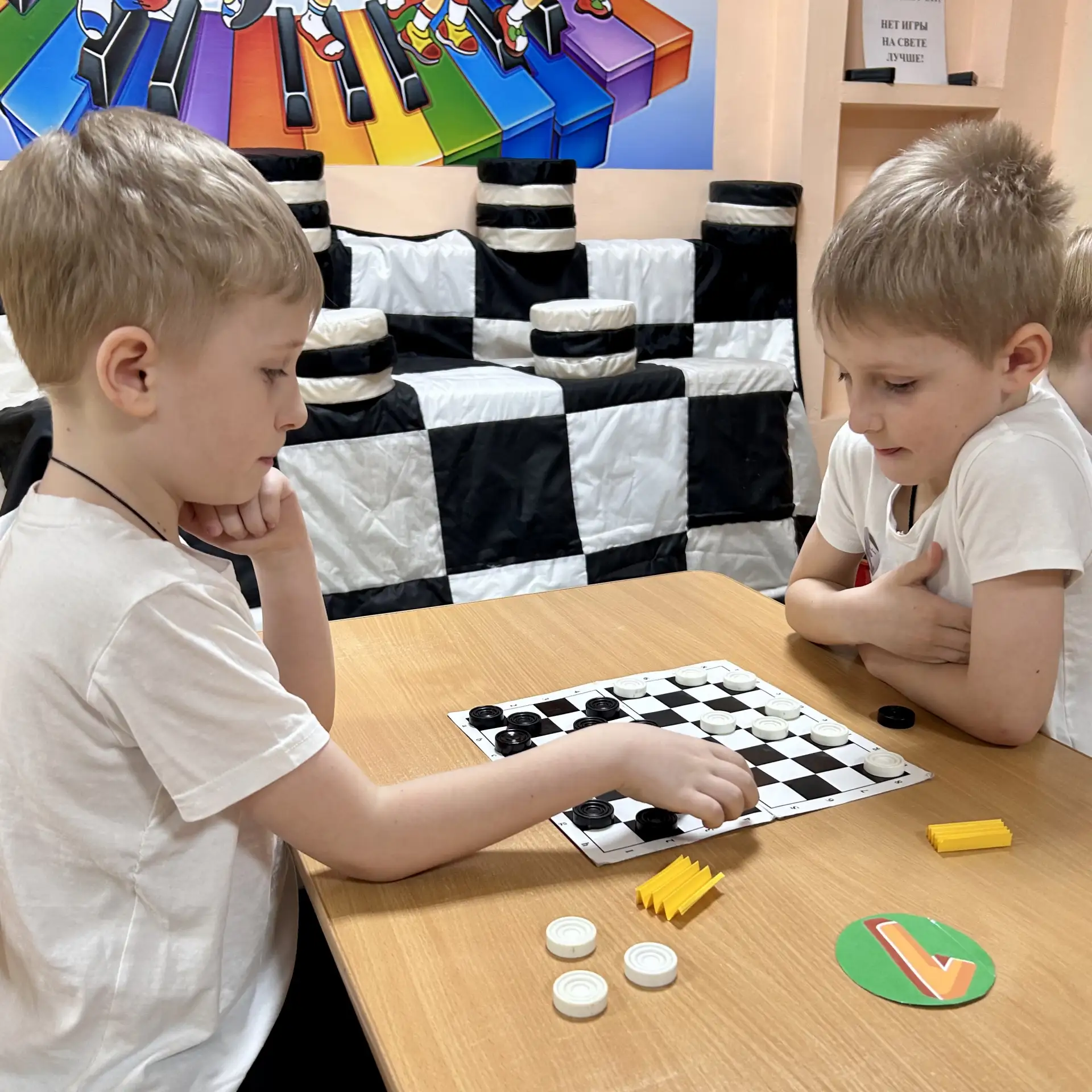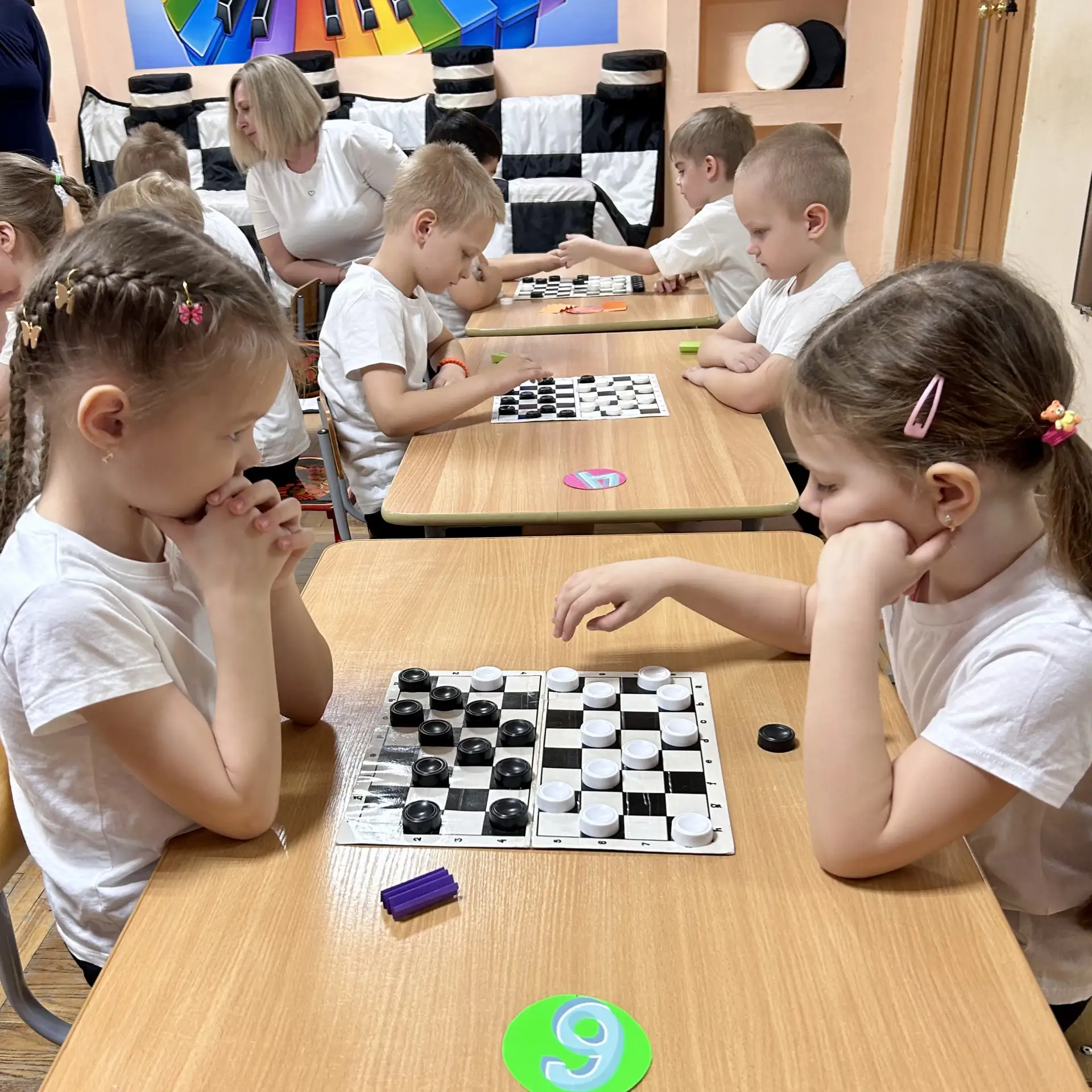 В детском саду №143 «Вишенка» г. Пензы состоялся захватывающий шашечный турнир. Юные стратеги сели за шашечные доски, чтобы сразиться за звание лучших. Турнир получился напряжённым, а борьба – упорной.