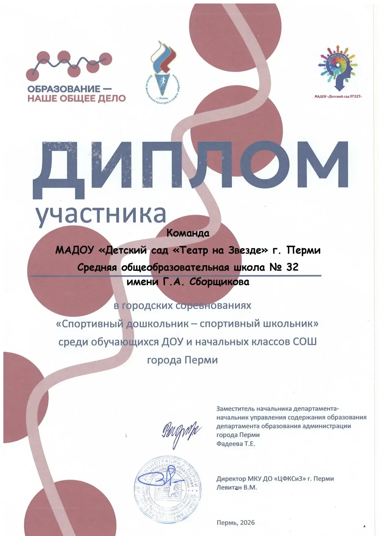 26 февраля обучающиеся нашей школы - ребята-первоклассники- совместно с воспитанниками подготовительной группы детского сада «Театр на Звезде» приняли участие в спортивных соревнованиях в рамках городского проекта «Детство равных возможностей» - «Спортивный дошкольник — спортивный школьник». Соревнования проходили на базе школы №127 г. Перми. Всего в соревнованиях приняло участие 10 команд.