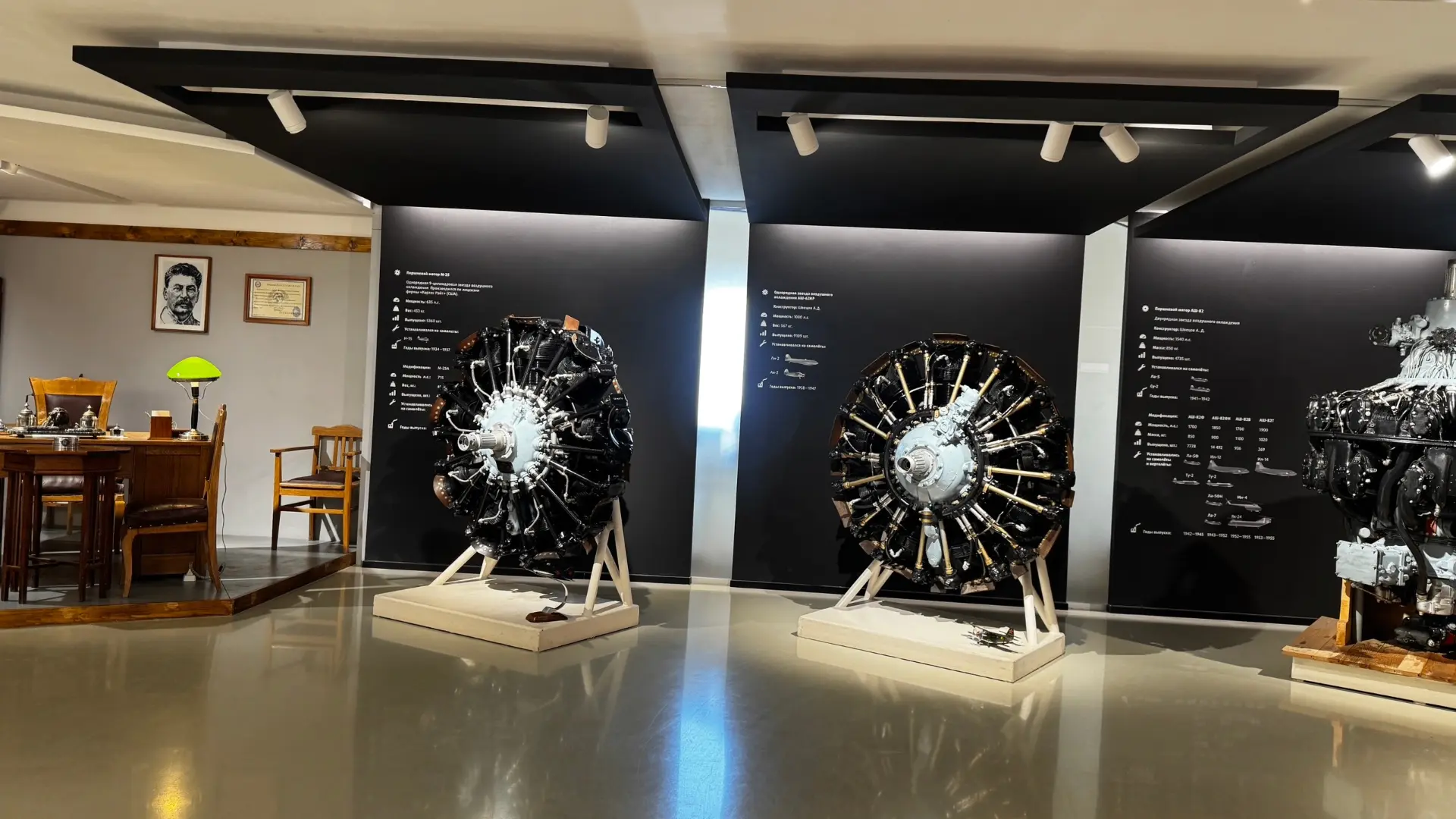 В зале можно увидеть 14 двигателей разных эпох, заглянуть в кабинет первого директора завода, изучить историю предприятия на интерактивной панели и познакомиться с технологией литья лопаток турбины.