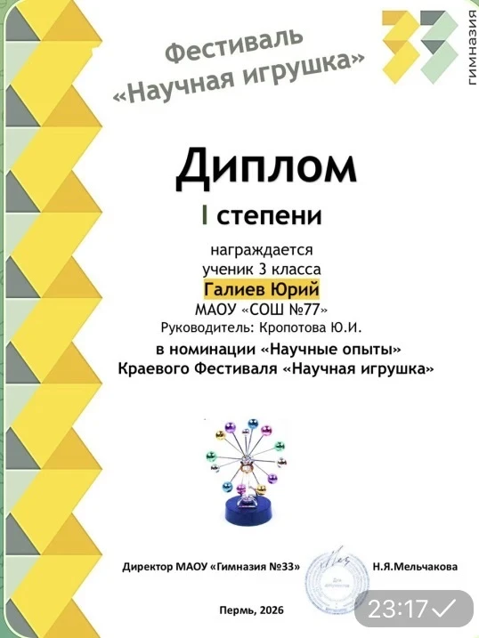 Ученики начальной школы приняли участие в краевом фестивале «Научная игрушка». Дети делились опытом в двух номинациях: «Научная игрушка» и «Научные опыты». Поздравляем победителей, призеров и участников.