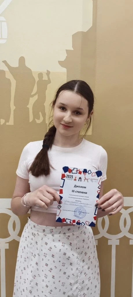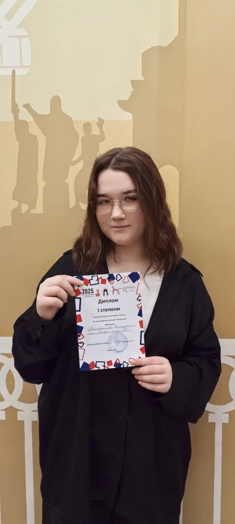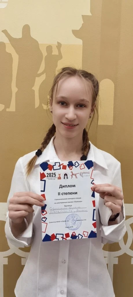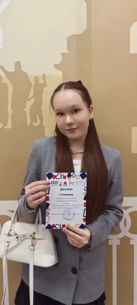 В этом году ученица 8В класса Полина Легостаева успешно прошла отборочный этап и получила приглашение в финал. Полина достойно представила свою проектную работу «Разработка настольной игры Time chase: грамматическая игра путешествие», продемонстрировав высокий уровень подготовки и креативности, увлеченность английским и умение аргументированно отстаивать свою позицию.