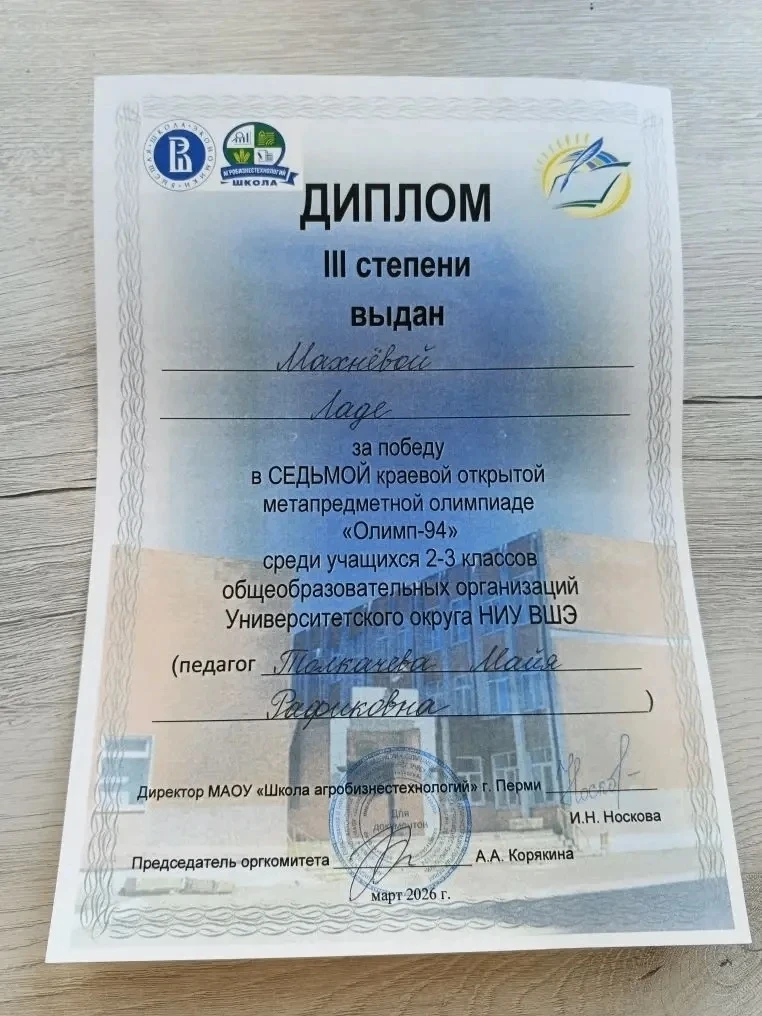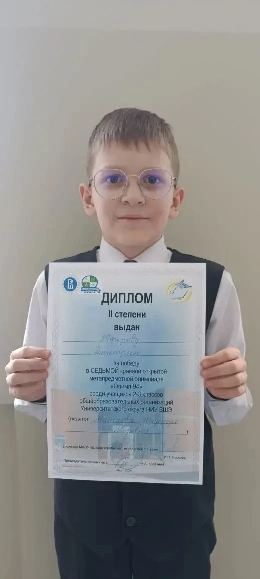 25 марта на седьмой краевой метапредметной олимпиаде «Олимп-94» нашу школу достойно представили ученица 2Б класса Махнева Лада (3 место) и ученик 3В класса Юферов Дмитрий (2место) !