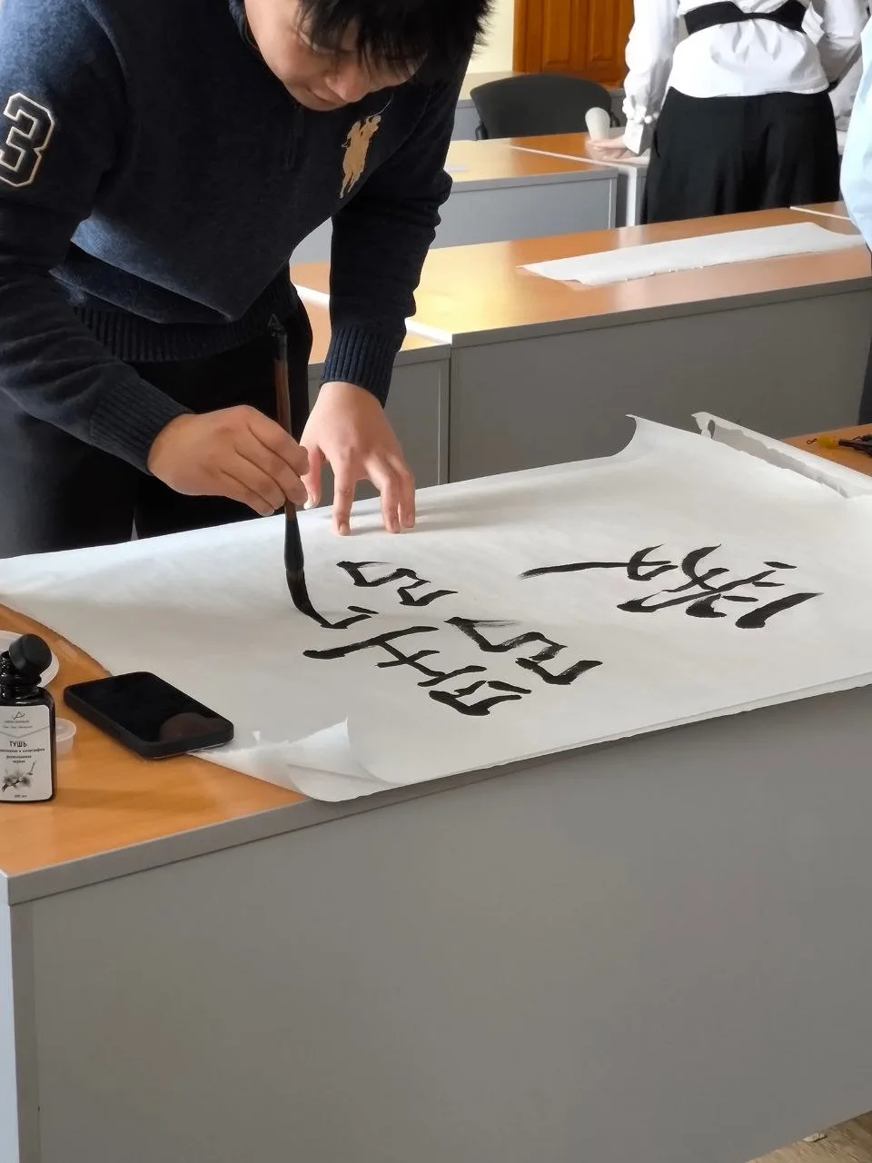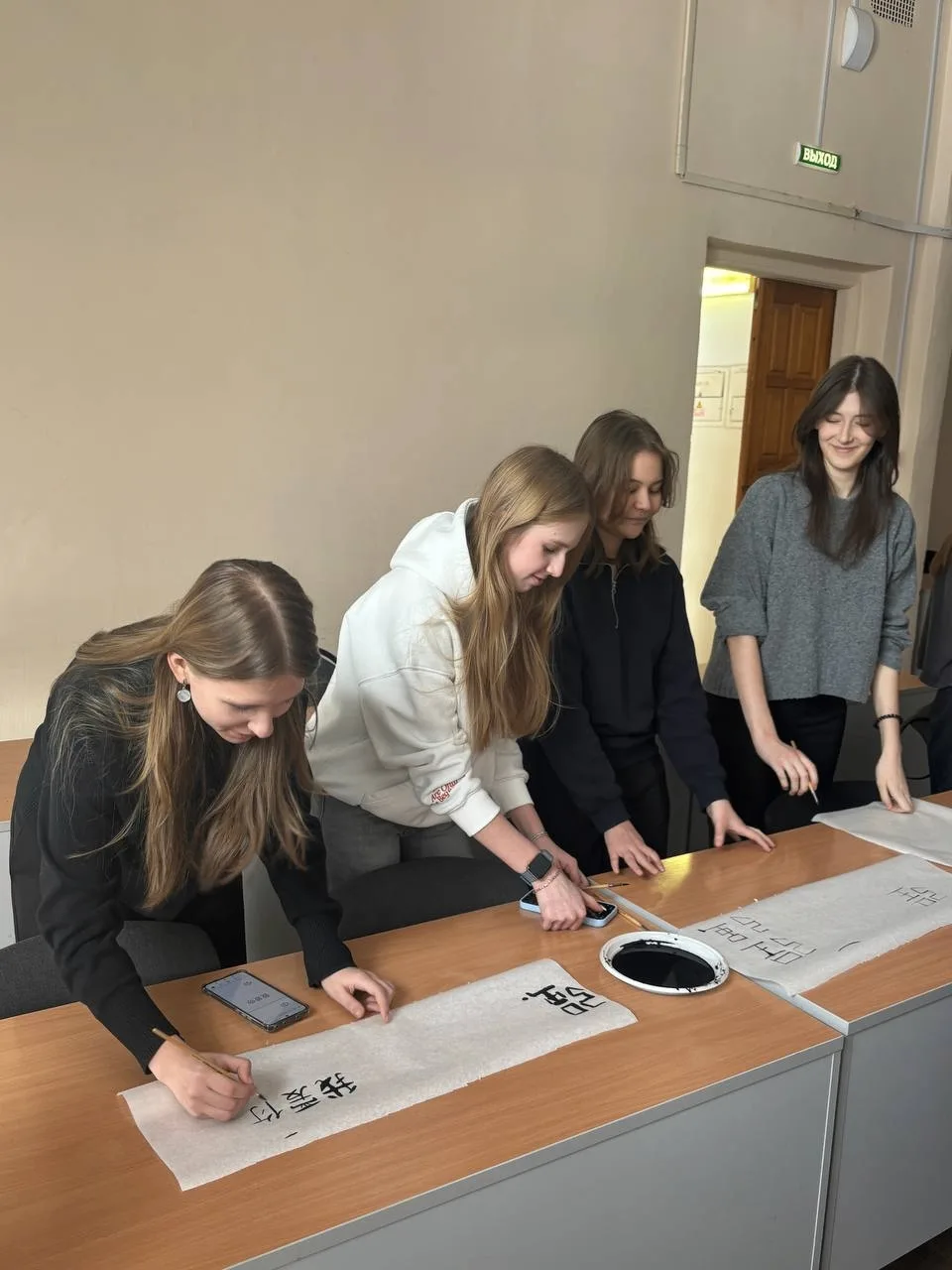 После ярмарки школьницы приняли участие в лекции «ЕГЭ с экспертом», а затем — в мастер-классе по рисованию китайских иероглифов на рисовой бумаге под руководством студентов из Китая, которые обучаются в Перми по программе обмена.