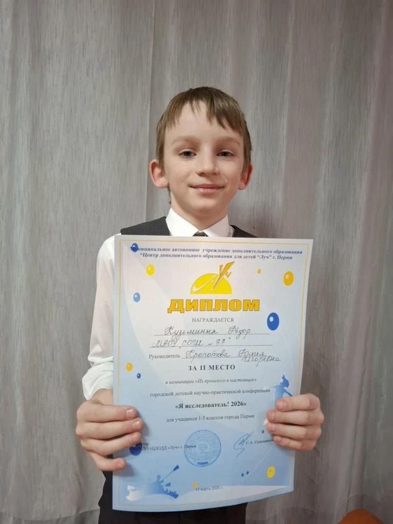 В номинации «Из прошлого в настоящее» из 29 работ 10 прошли в финал. Среди них работа Кузьминых Фёдора из 3В класса.