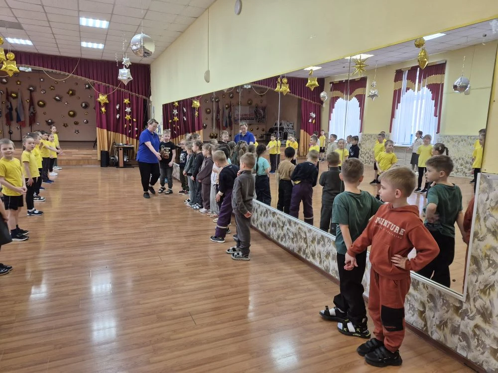 Прямо сейчас в актовом зале непривычно атмосферно: у 1 «Б» проходит урок физкультуры. Вместе с Мариной Владиславовной Крафт ребята разучивают вальс. 💃🕺