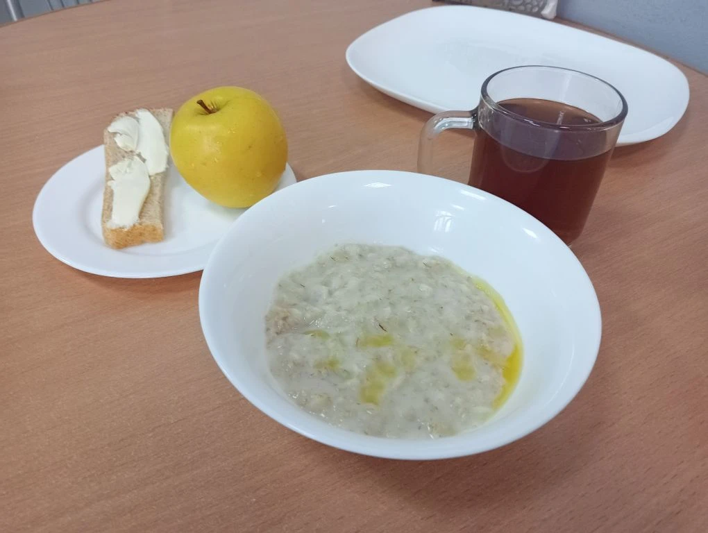 🍎 Сегодня на завтрак: геркулесовая каша, бутерброд с маслом, чай и яблоко