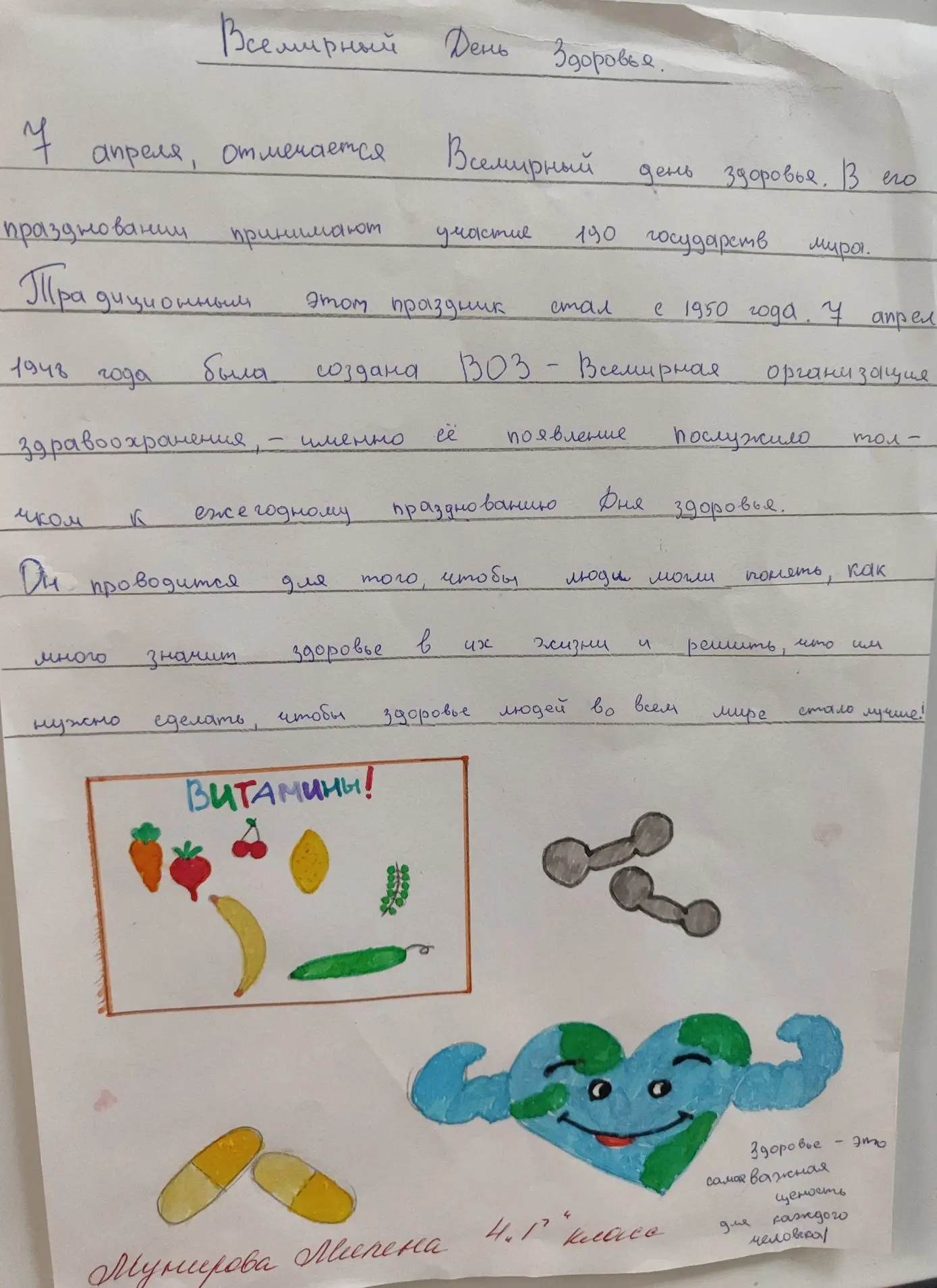 Ребята из 4 «Г» класса вместе с Крафт Мариной Владиславовной подготовили крутую стенгазету ко Всемирному дню здоровья! 💪