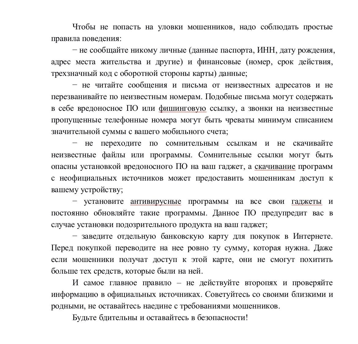 — не переходи по подозрительным ссылкам;