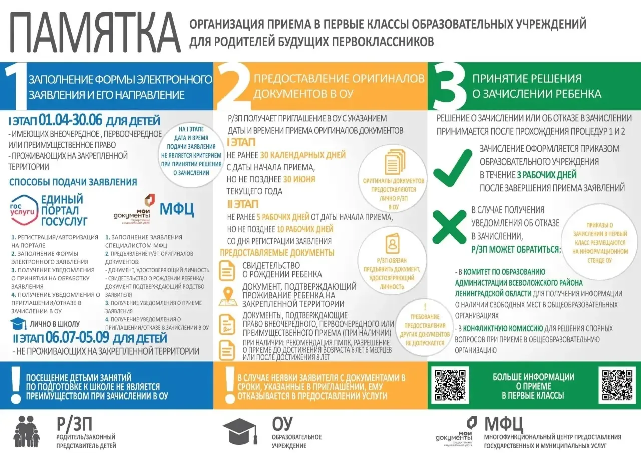 🗓️С 1 апреля по 30 июня 2026 года. Заявления принимают у детей, проживающих на закреплённой за школой территории (по месту регистрации — постоянной или временной), а также у льготников, имеющих внеочередное, первоочередное или преимущественное право на зачисление.