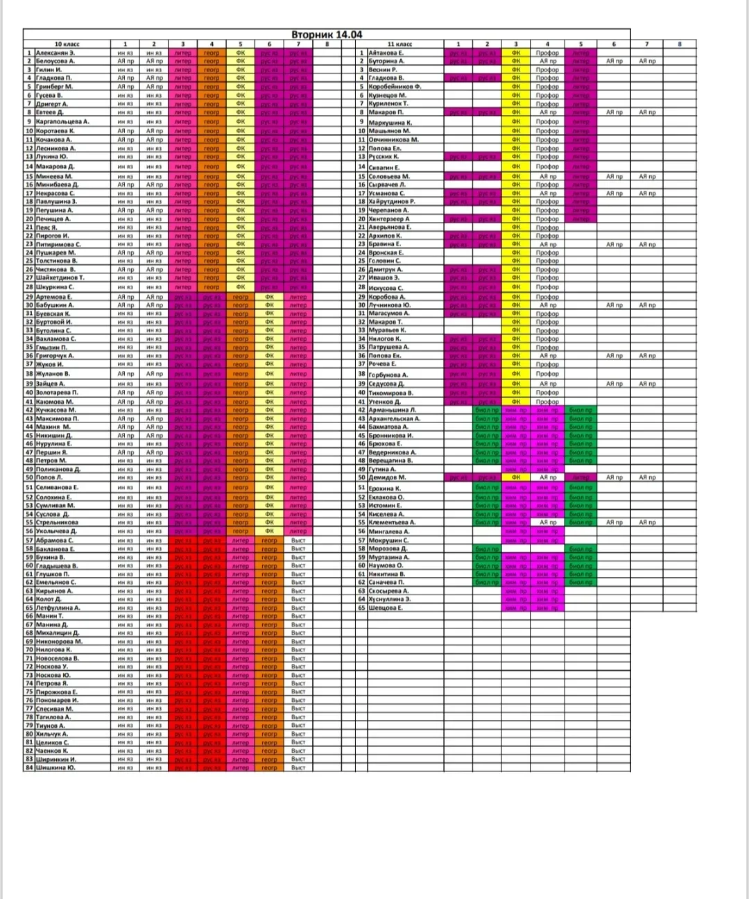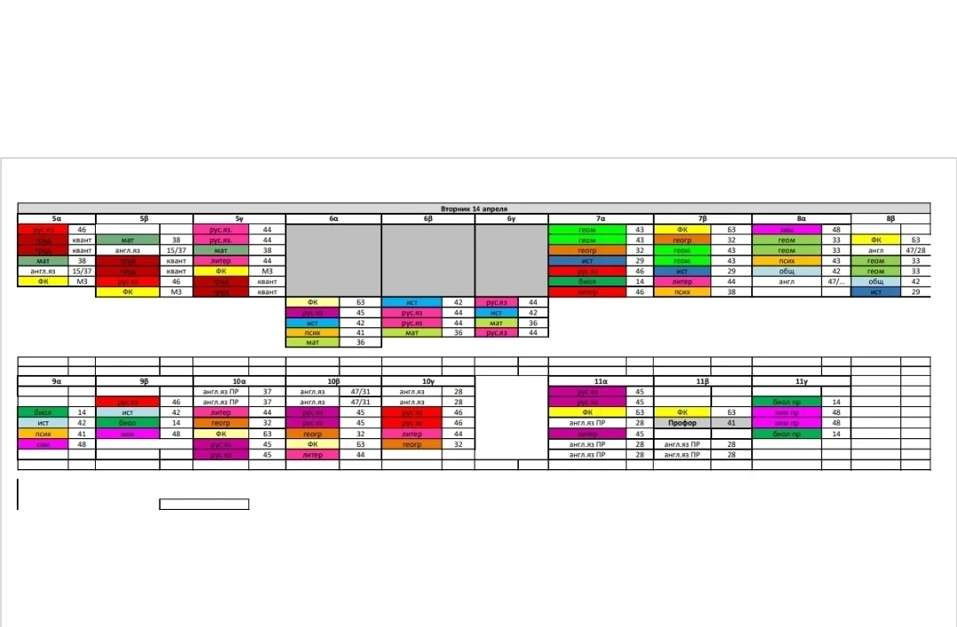 Расписание на вторник