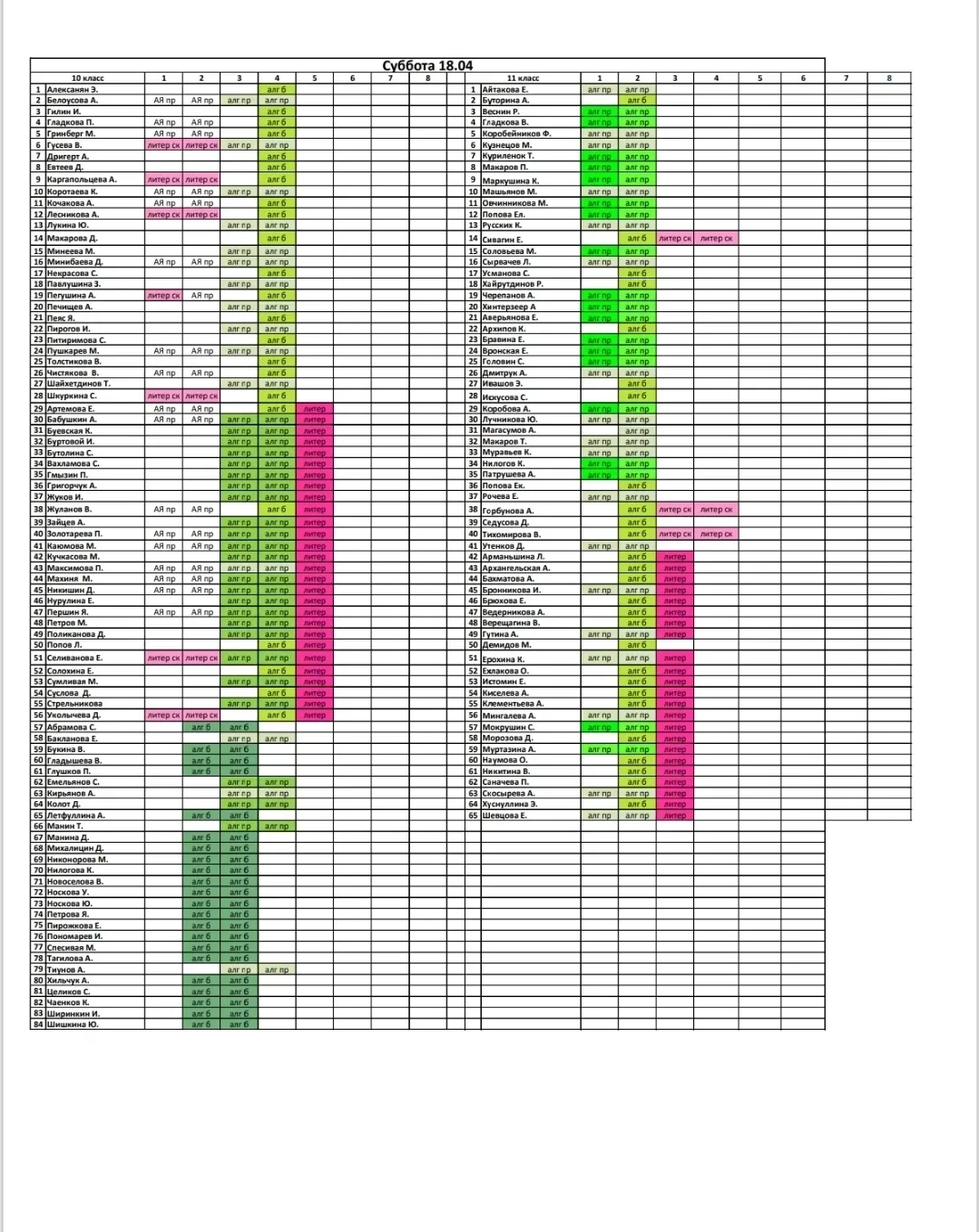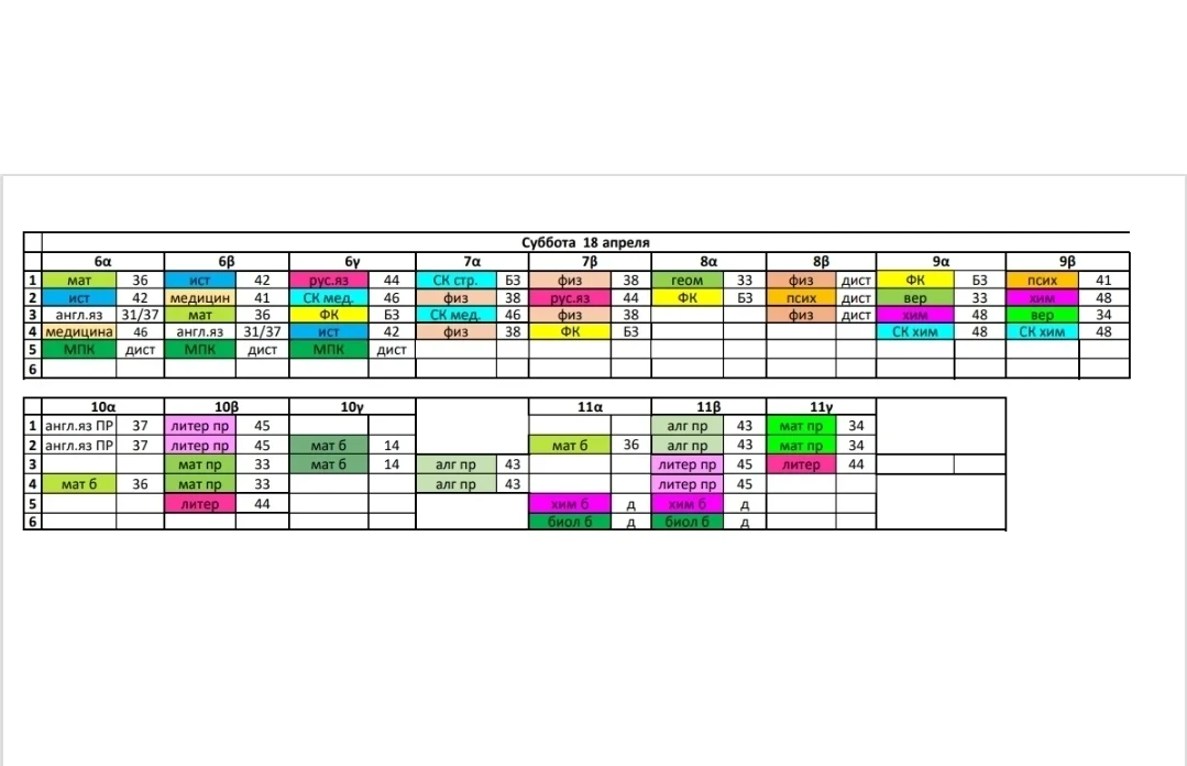 Расписание, суббота