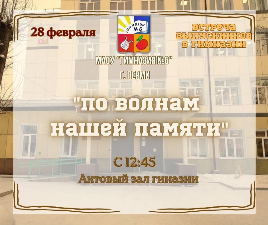 🎞Ждём вас 28 февраля в 12.45 в актовом зале Гимназии «По волнам нашей памяти» - так мы назвали нашу программу, в подготовке которой принимают участие выпускники, гимназисты, родители и педагоги.