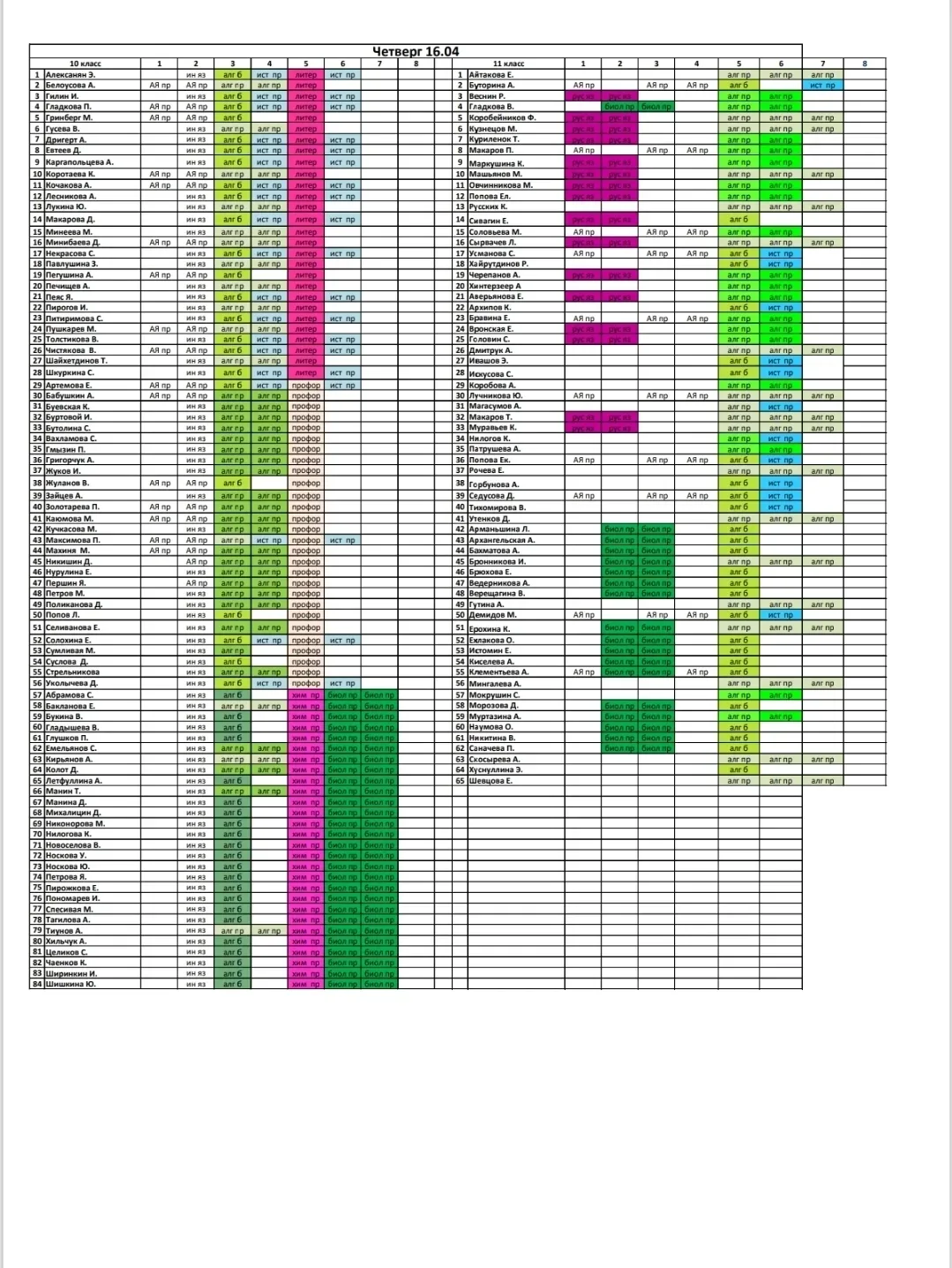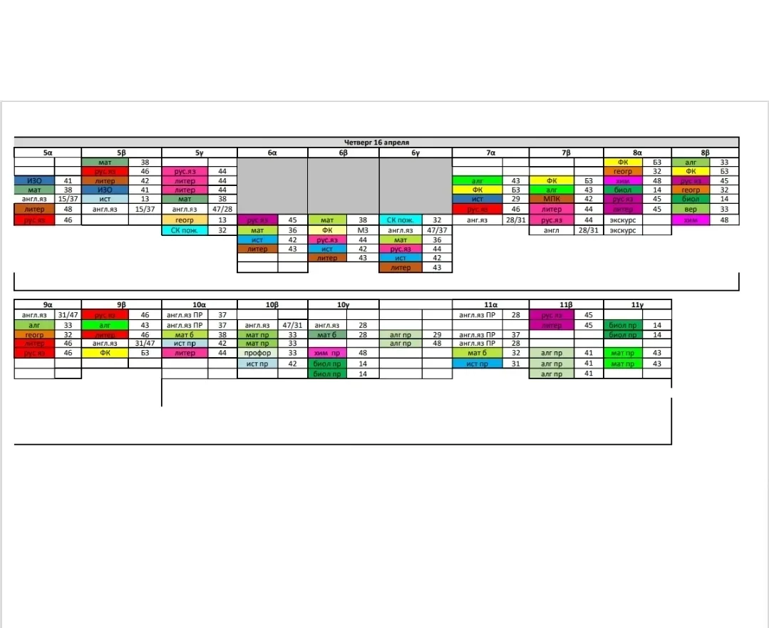 Расписание, четверг