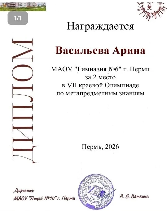 Поздравляем ученицу 4 бета класса , со 2 местом на краевой олимпиаде🎉Гордимся тобой, Арина и желаем дальнейших успехов! Руководитель Литвиновская Наталья Юрьевна 👏