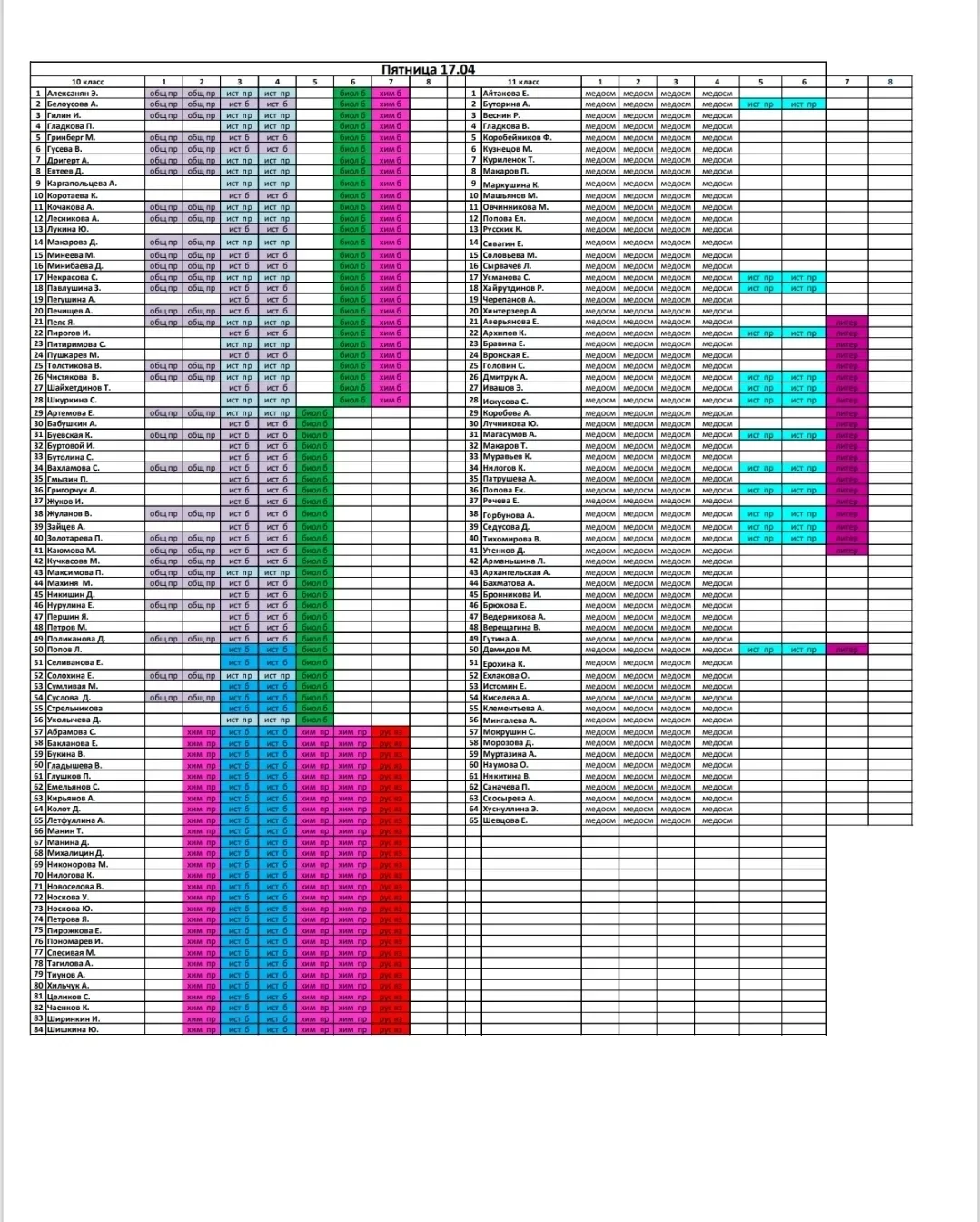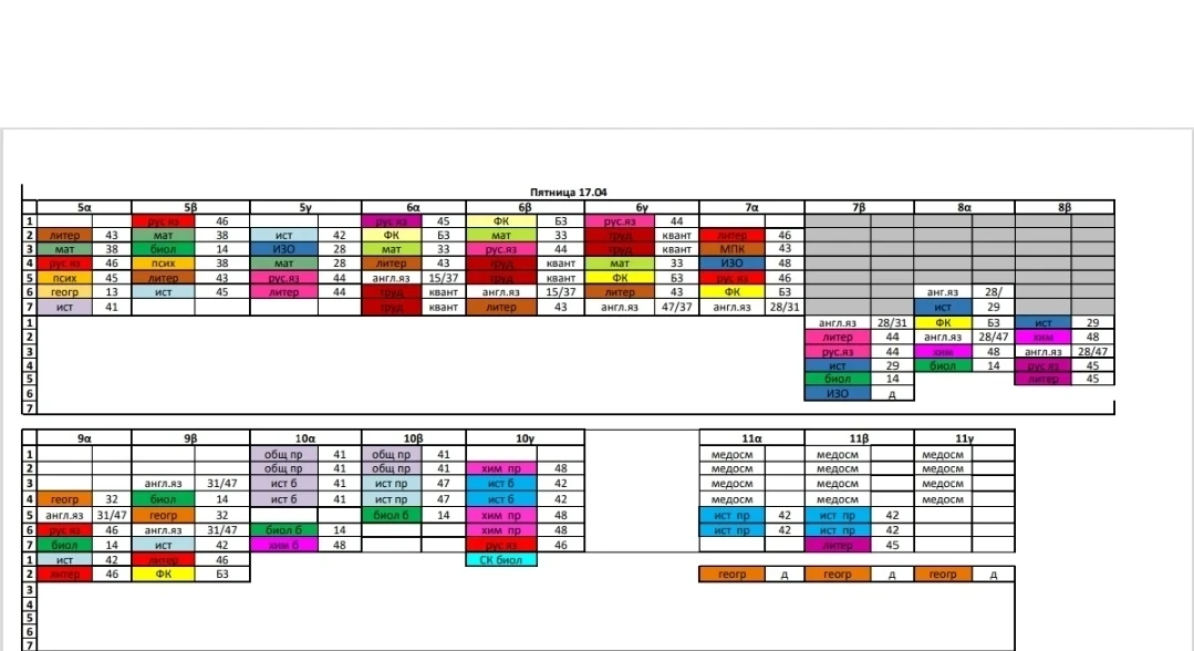 Расписание, пятница