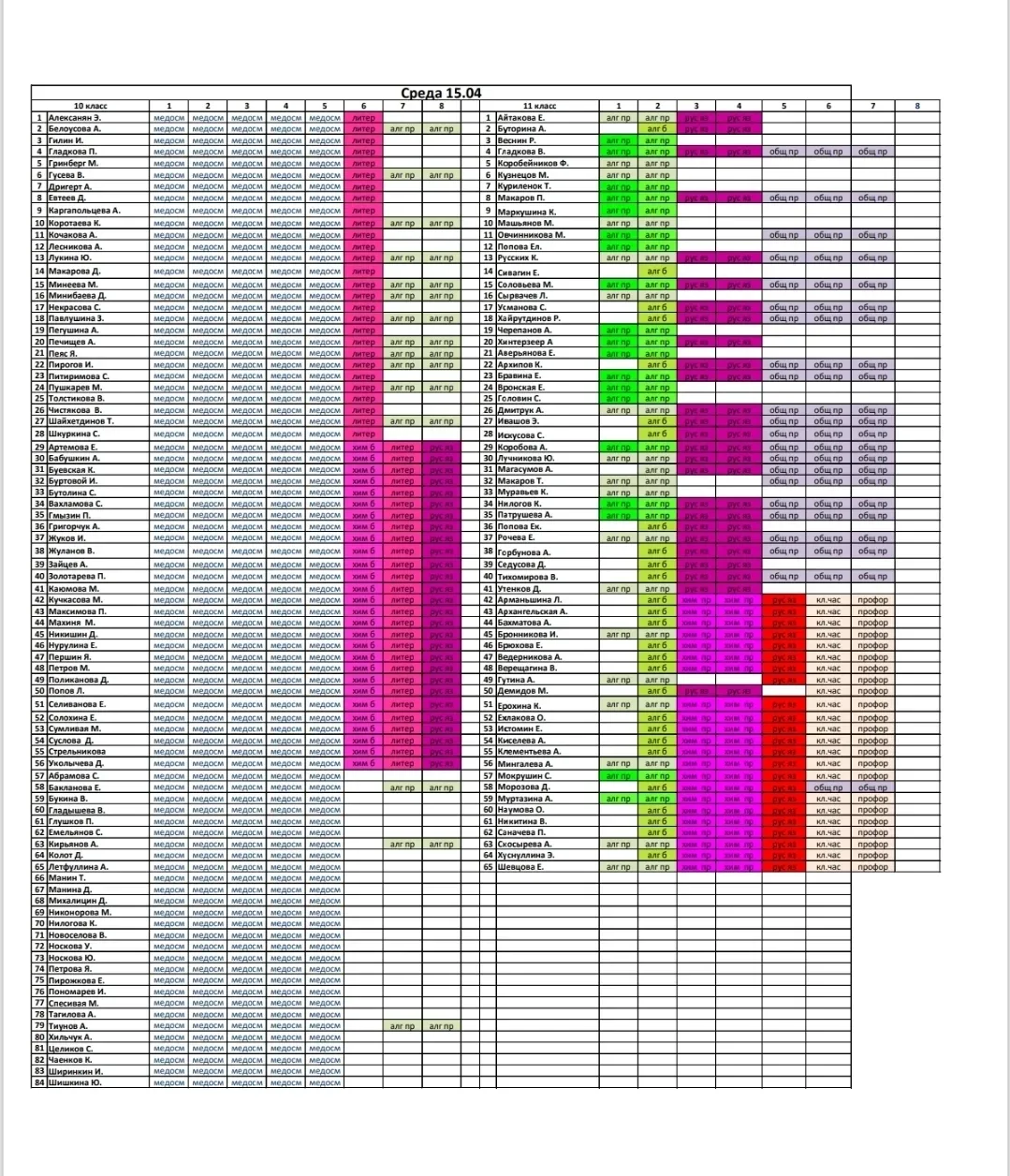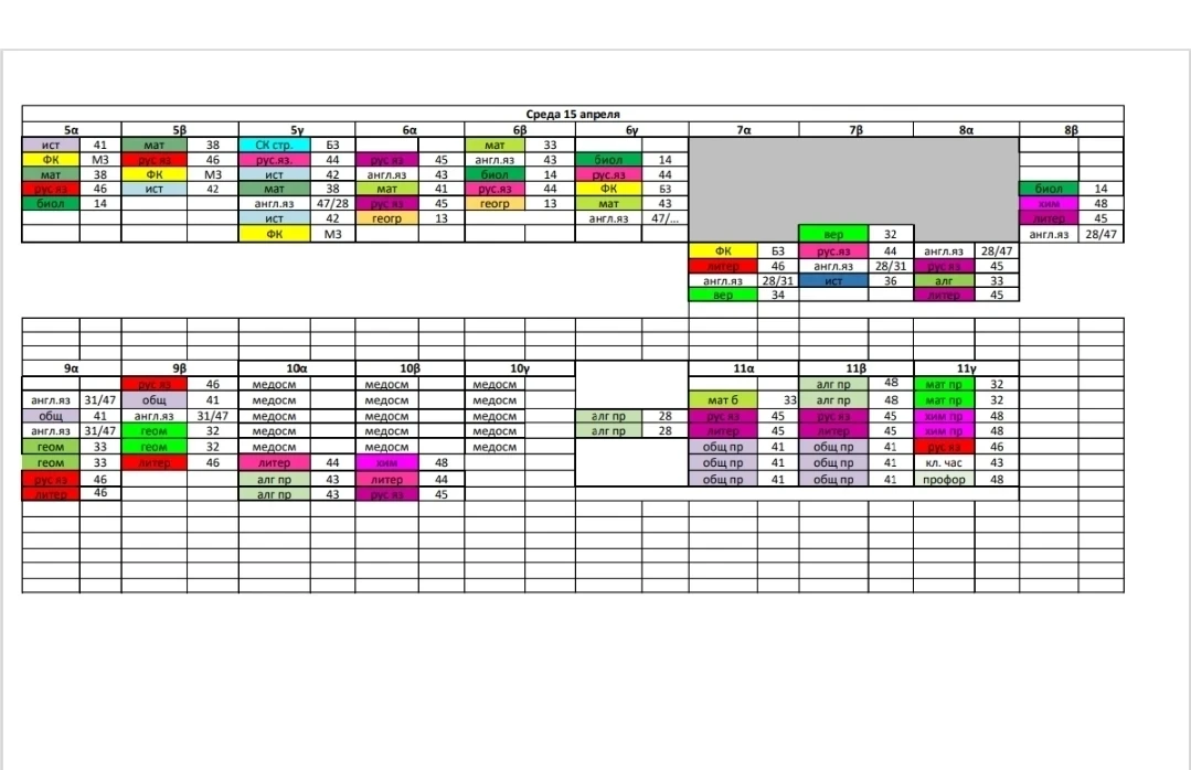 Расписание, среда