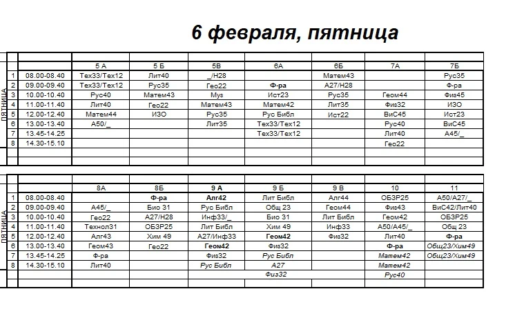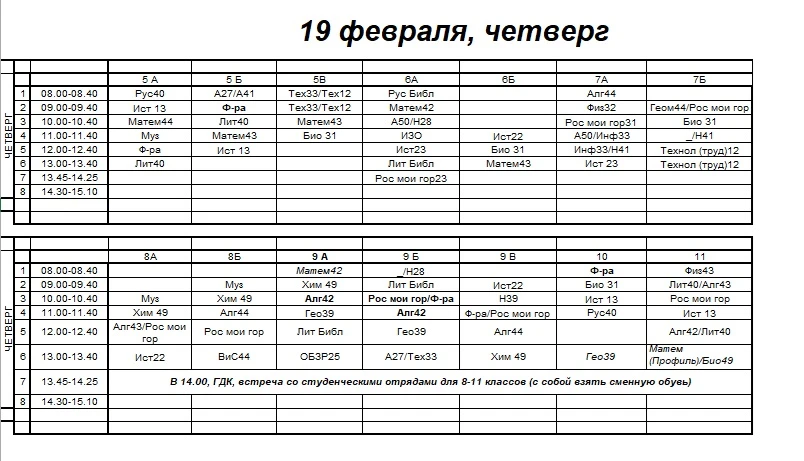 Внимание 9Б! Изменение в расписании