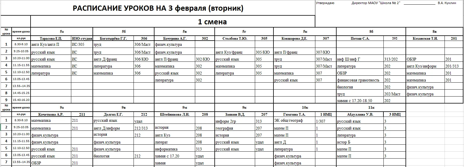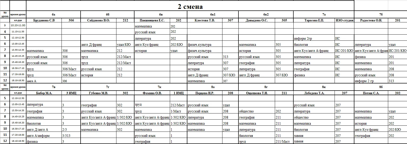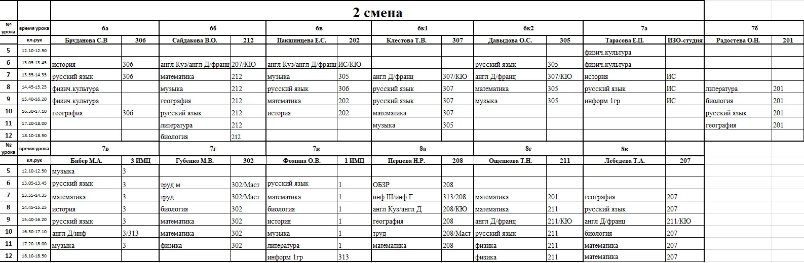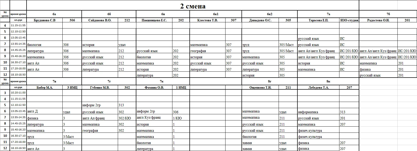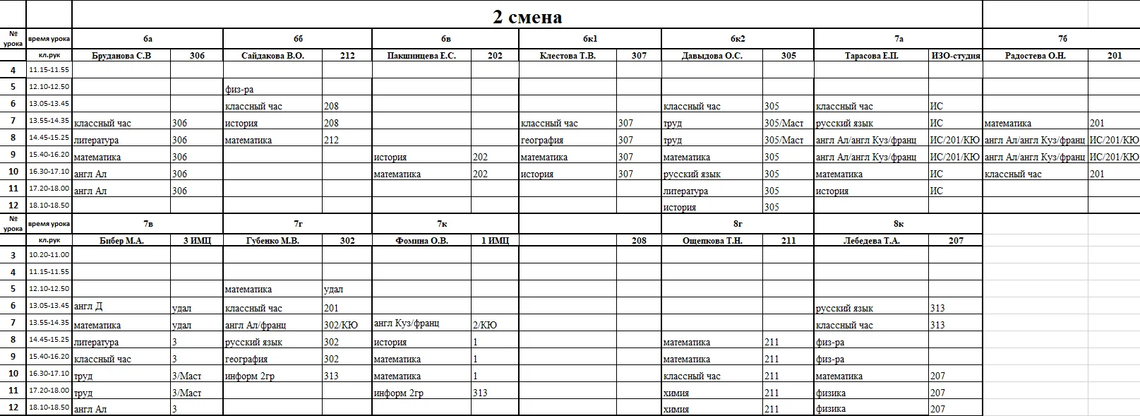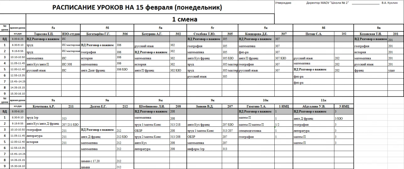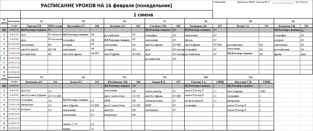 Внимание, изменения в расписании у 7а, 7г, 7к, 6к2, 8г, 8к, 8в