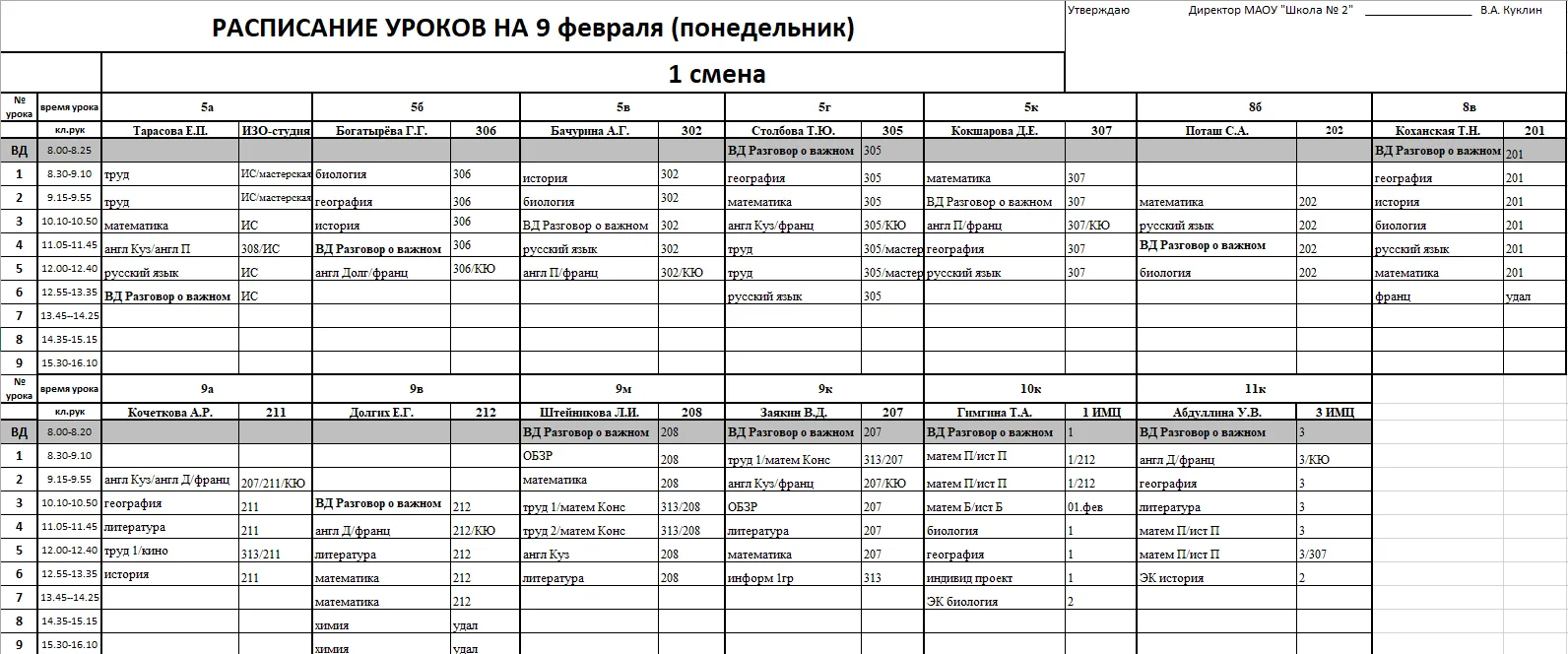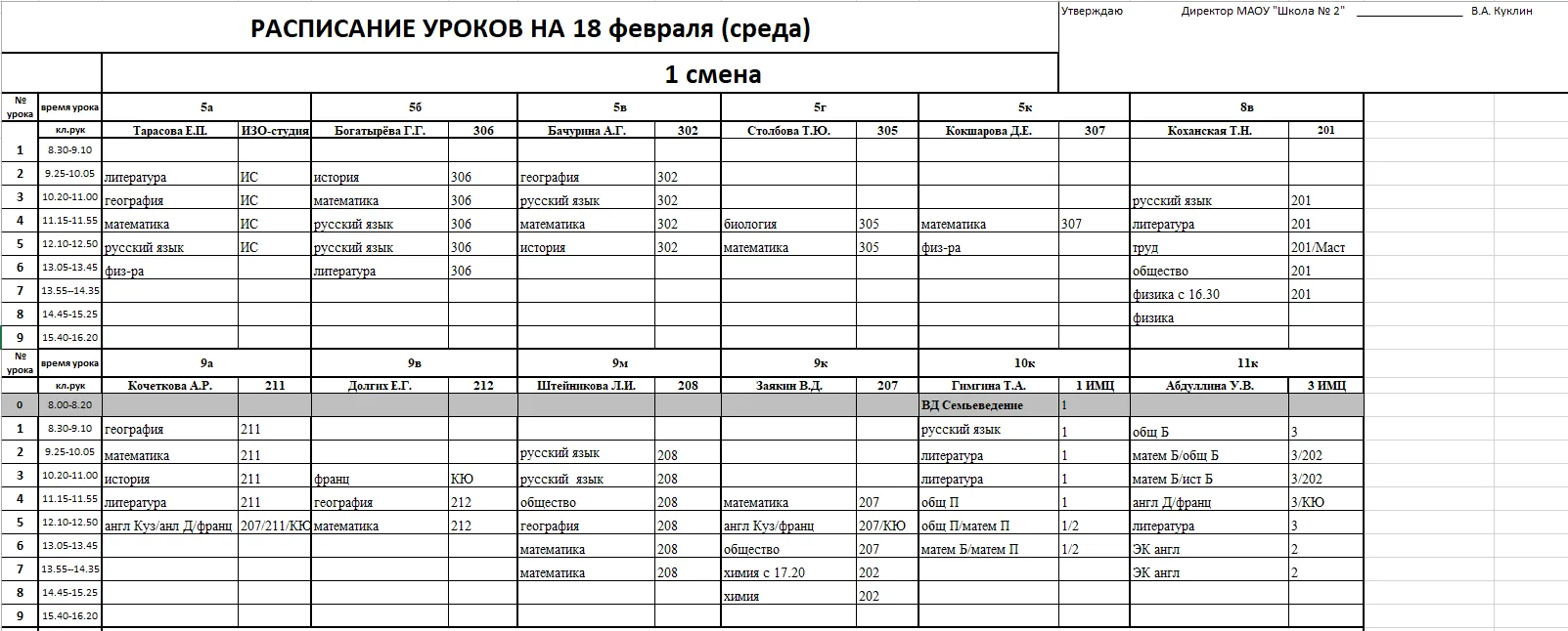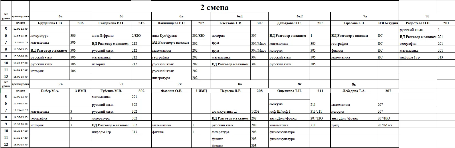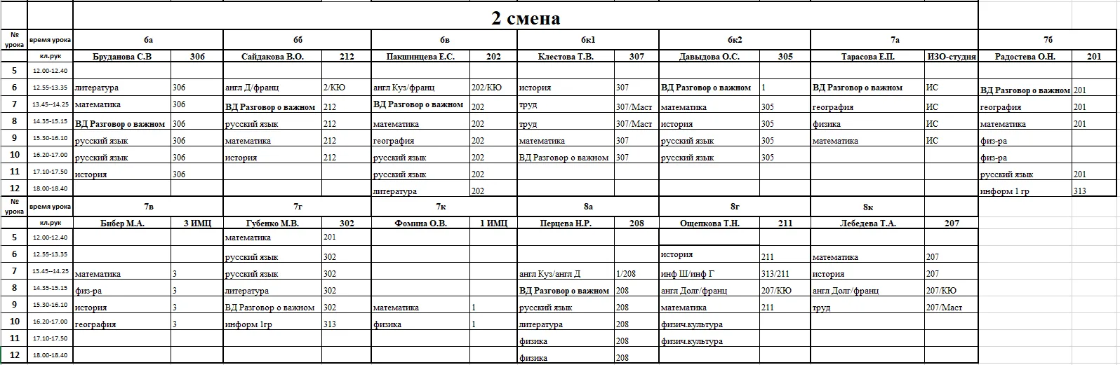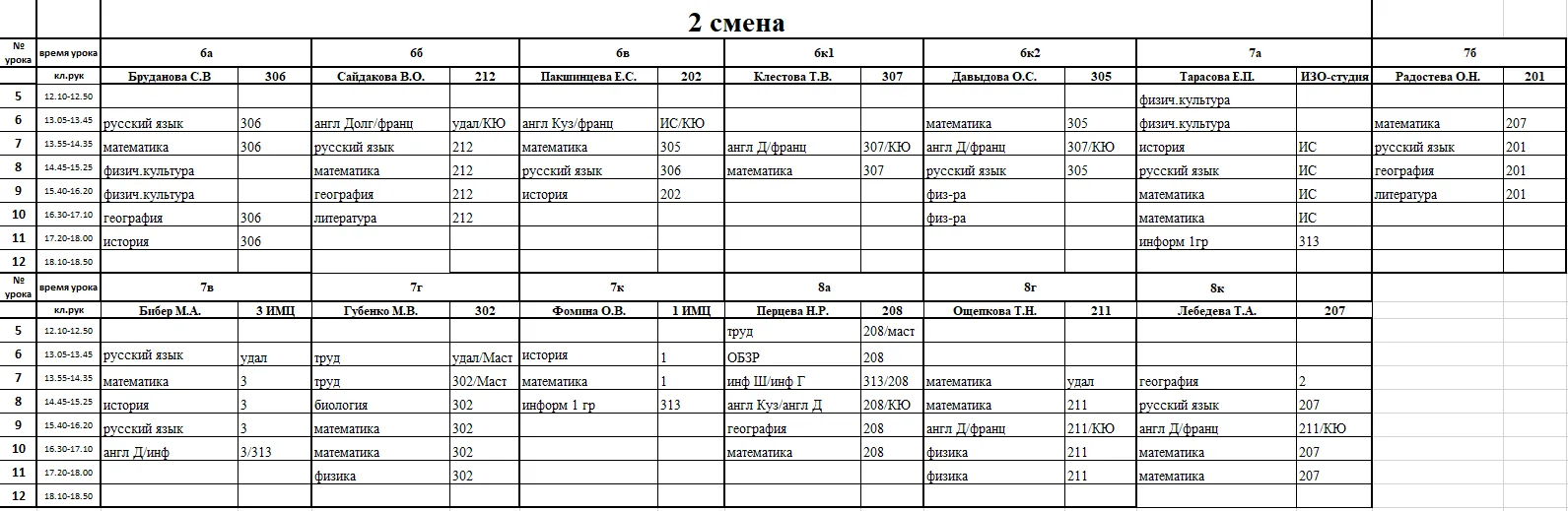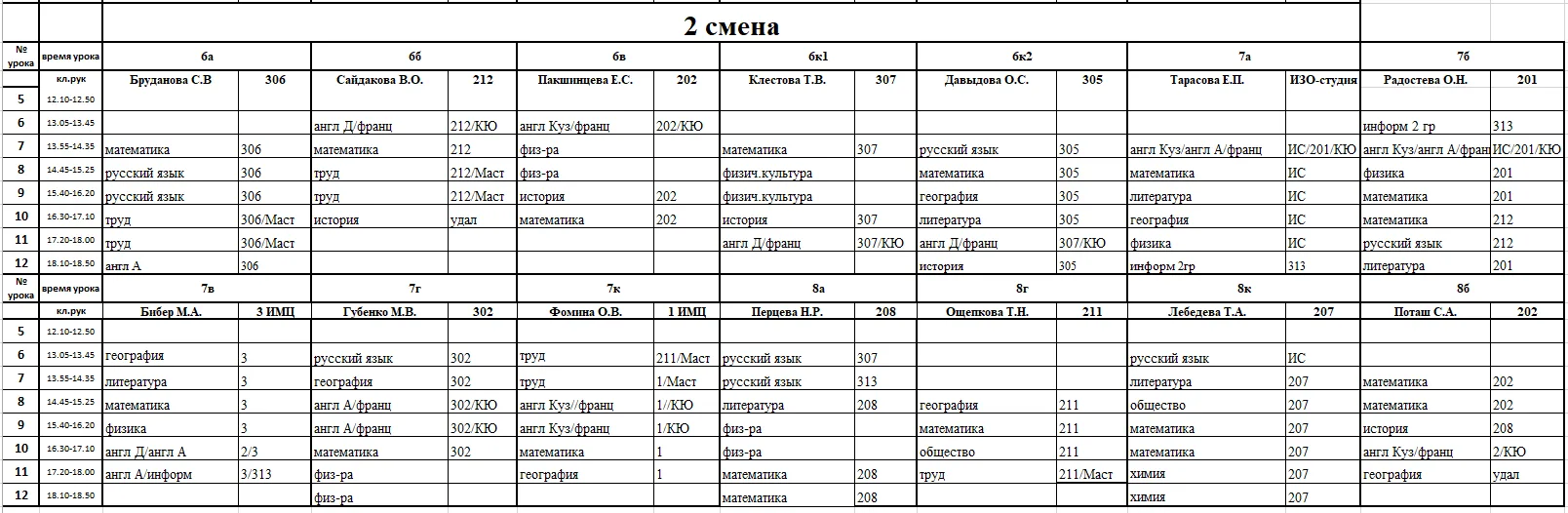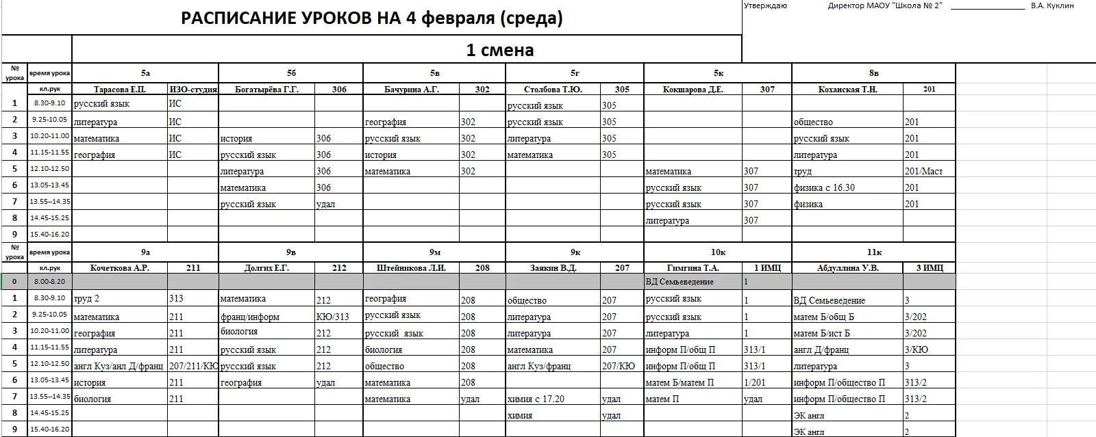 Внимание, изменения в расписании у 7а, 7г, 7к, 6к2, 8г, 8к, 8в
