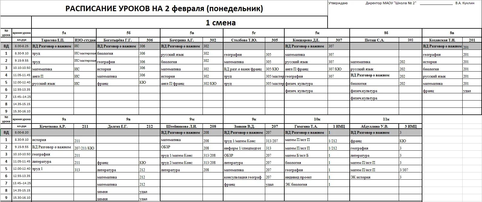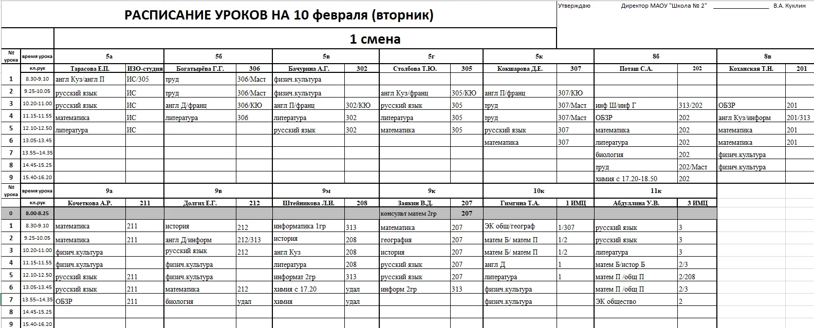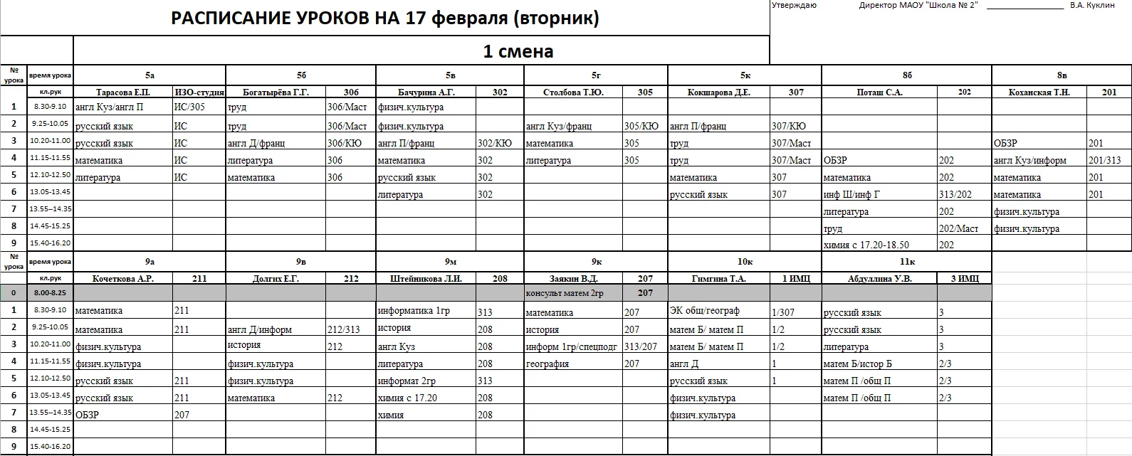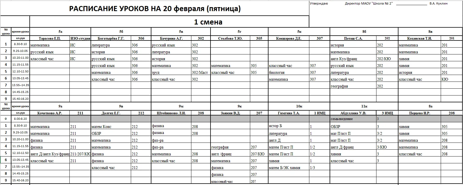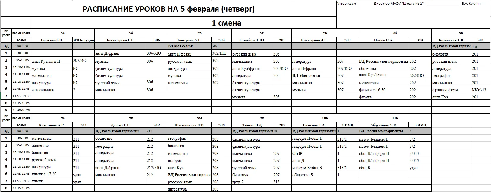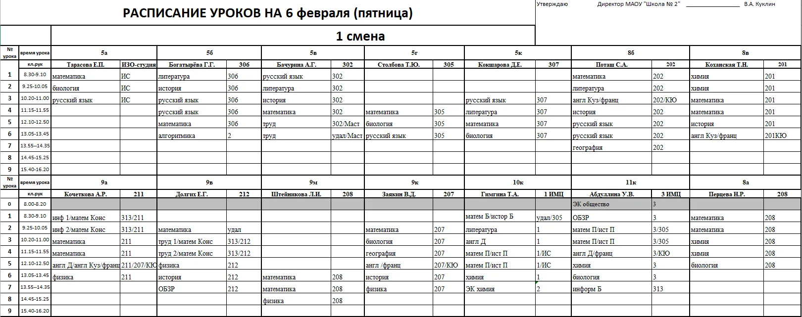Внимание, изменения в расписании у 7а, 7г, 7к, 6к2, 8г, 8к, 8в