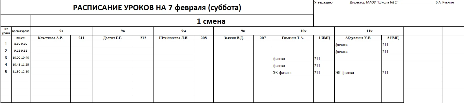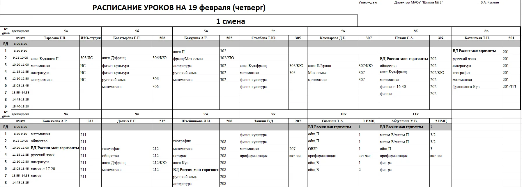 Внимание, изменения в расписании у 7б, 7в, 8б, 9к, 10к и 11к классов