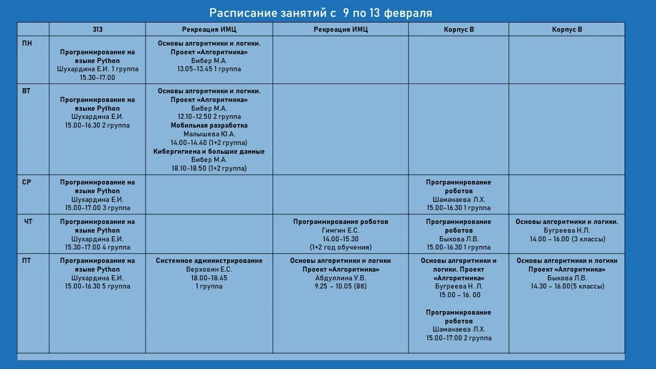 Публикуем расписание на следующую неделю. По всем вопросам вы можете обратиться: