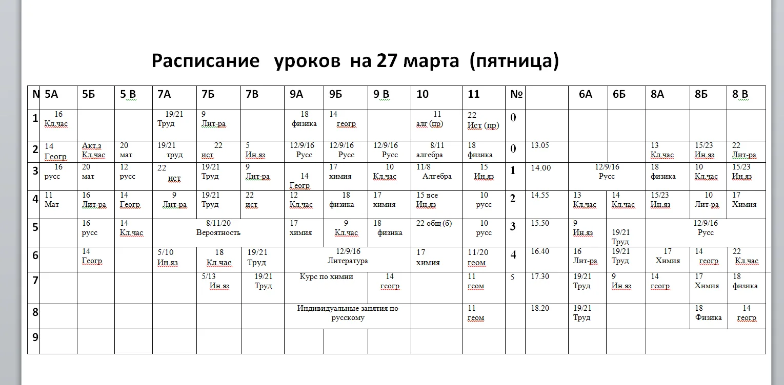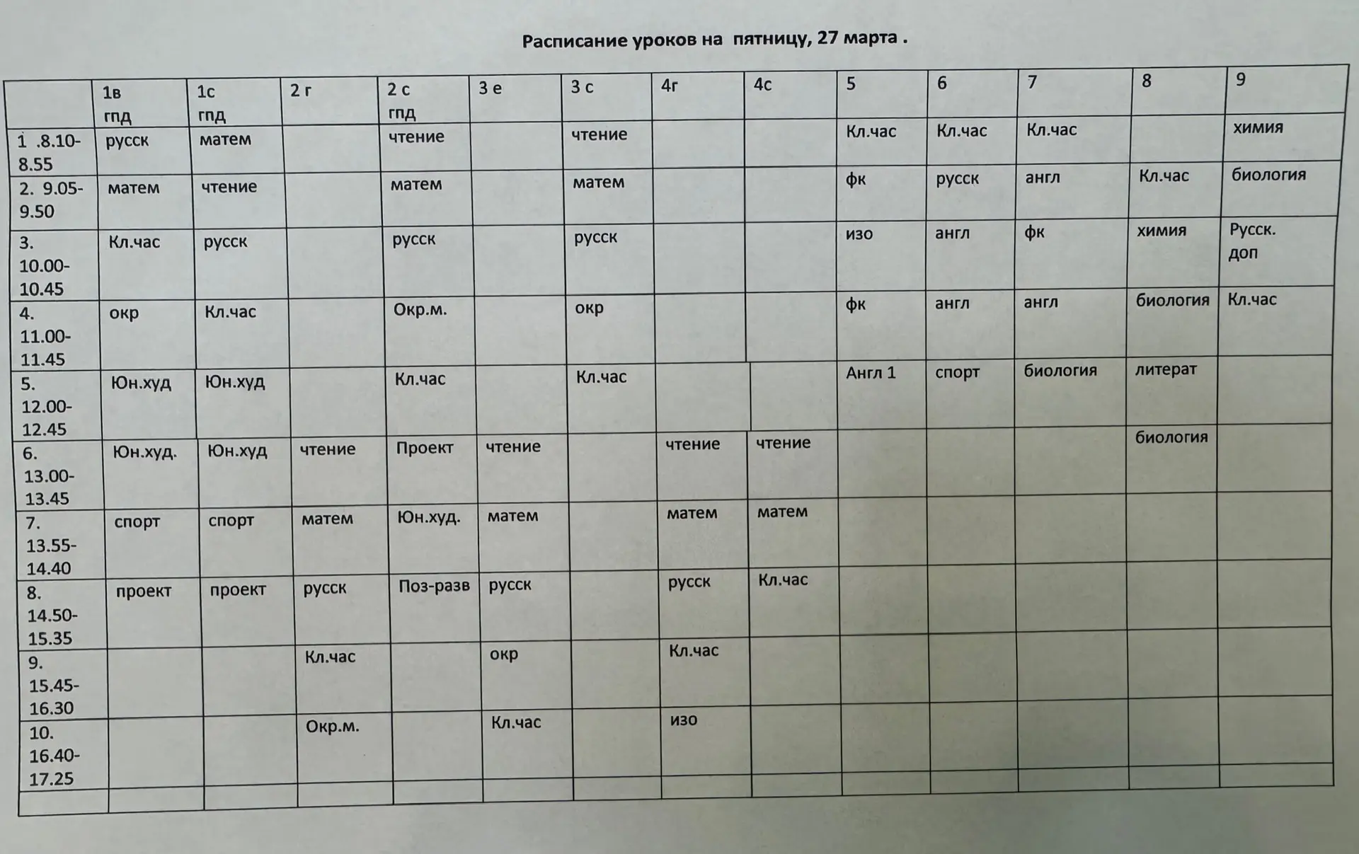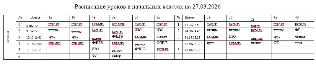 Расписание на 27.03, пятница