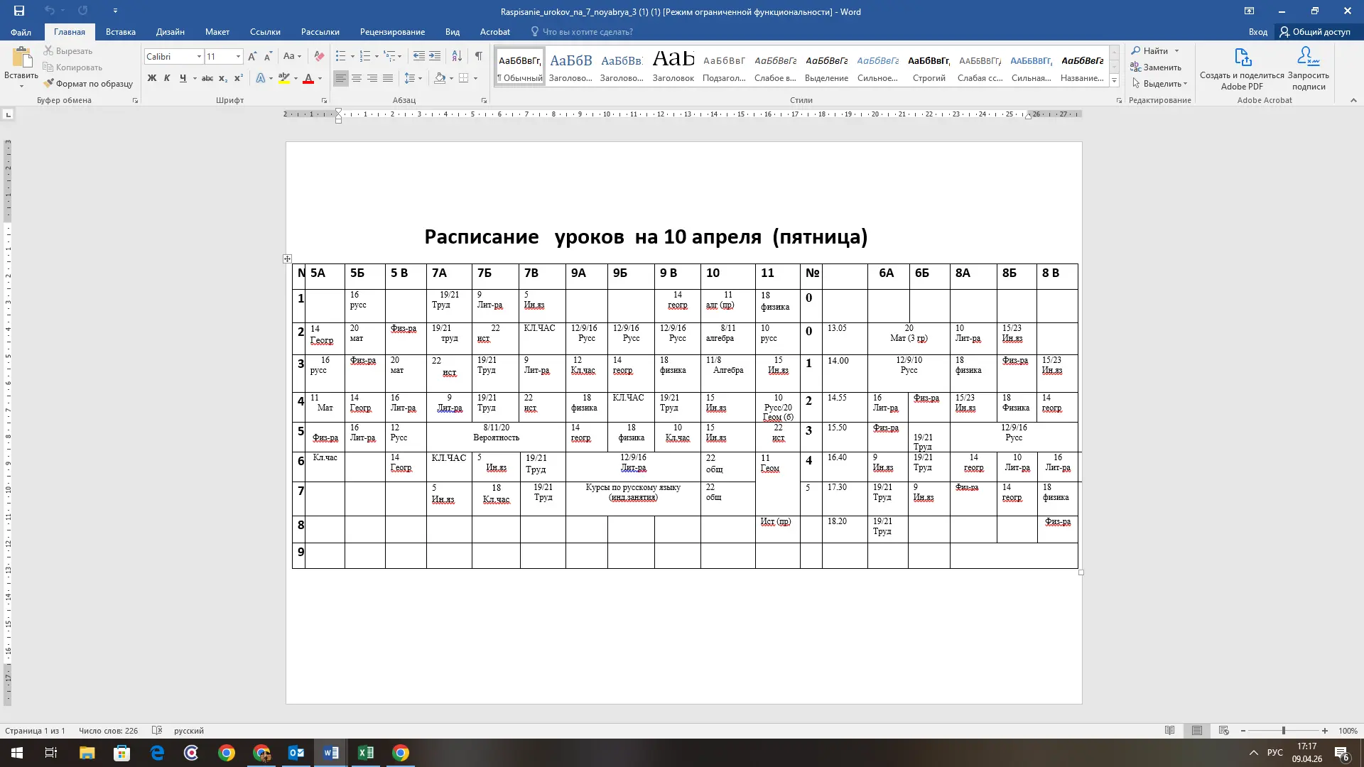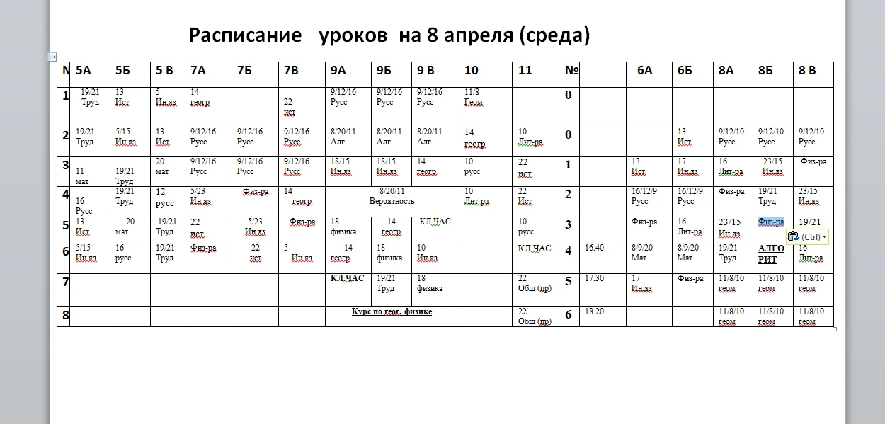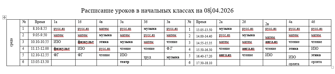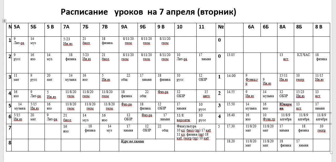 Расписание на 8.04