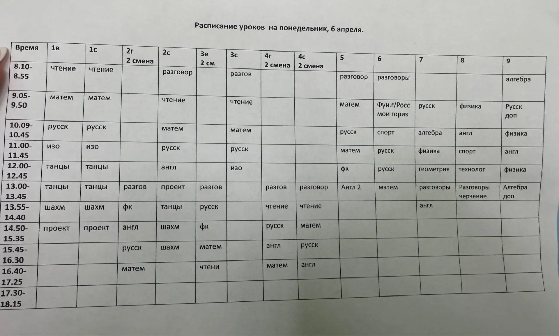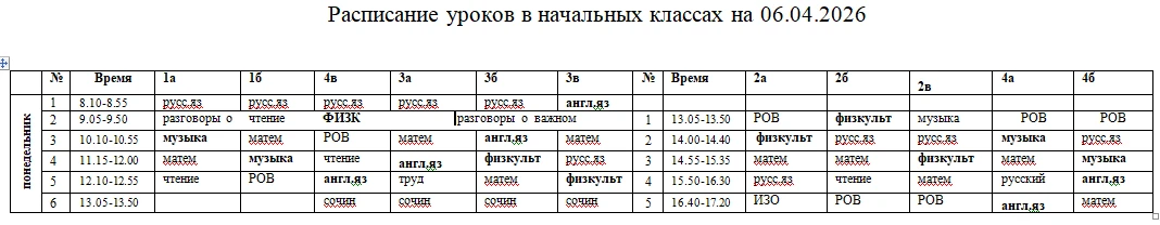 Расписание на понедельник, 6 апреля