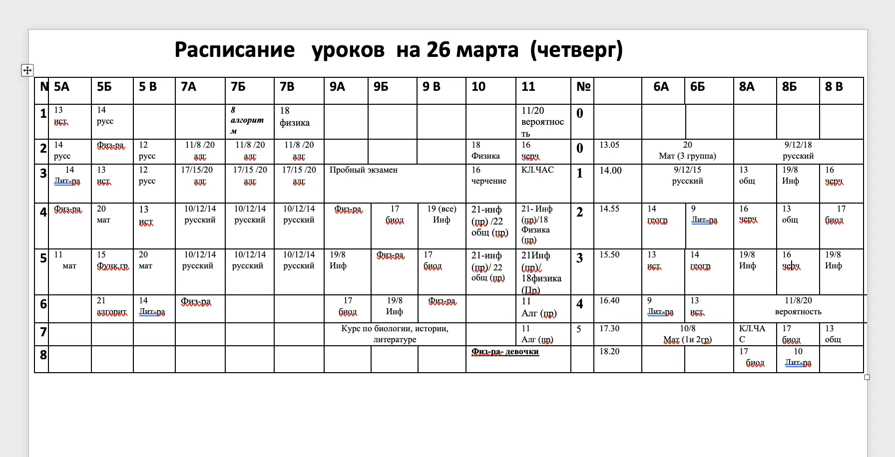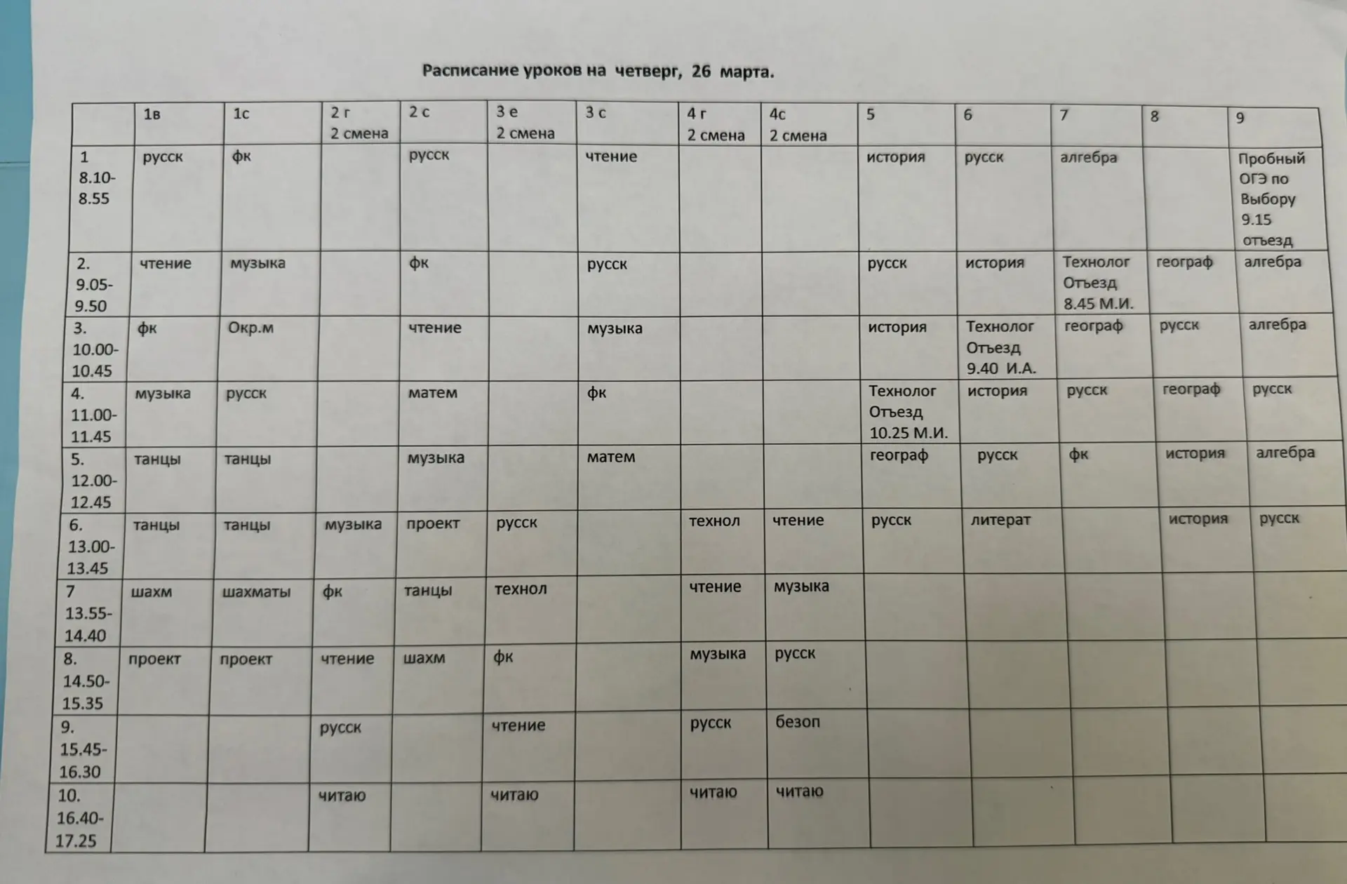 ИЗМЕНЕНИЯ в расписании на 26.03