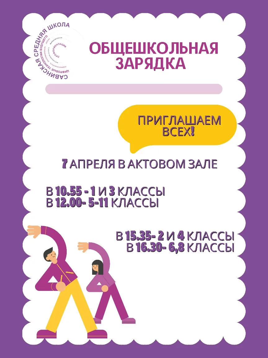 Завтра, 7 апреля, в нашей школе пройдут общешкольные зарядки, посвящённые Неделе здоровья!