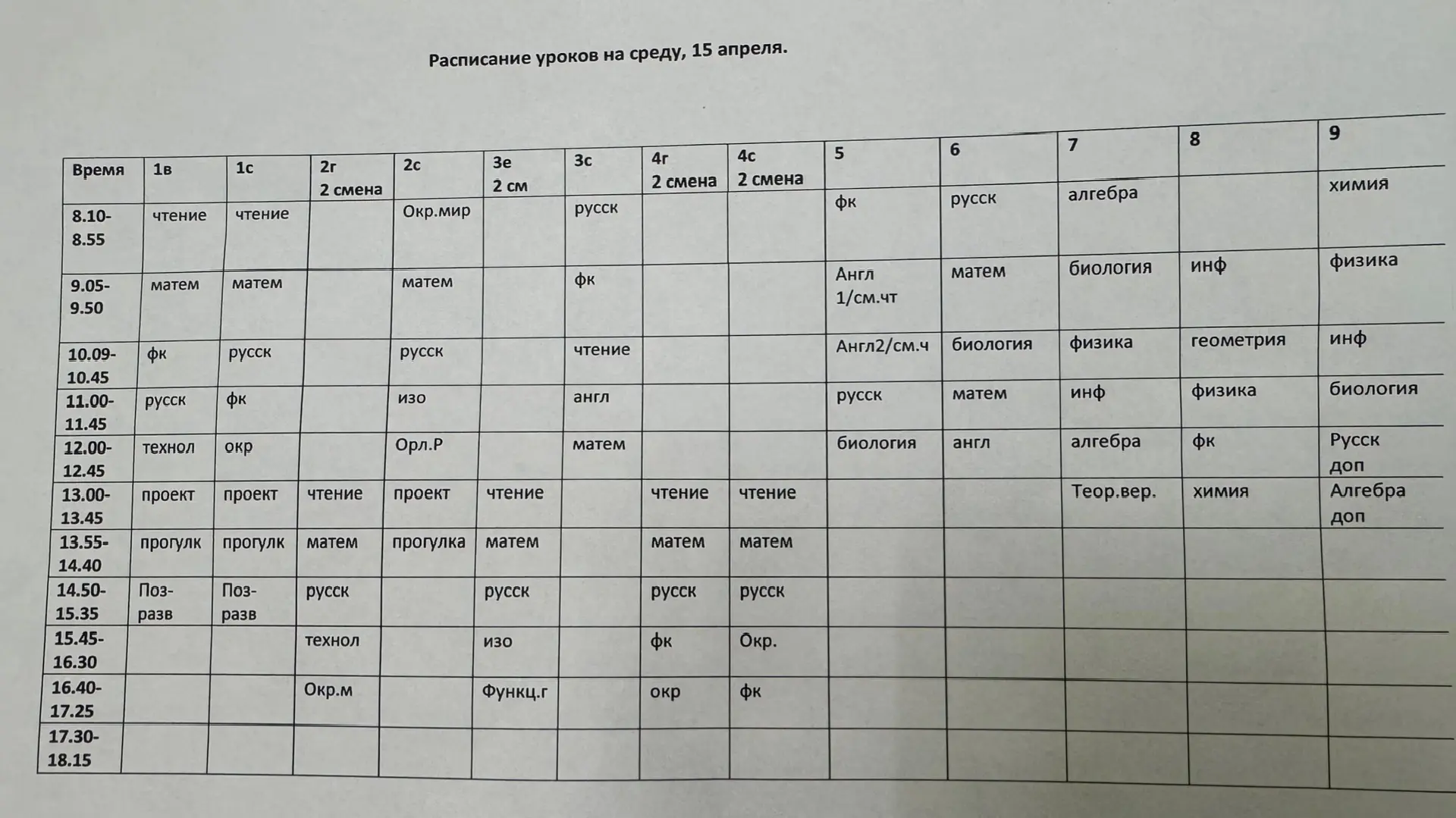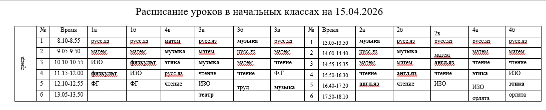 Расписание на 15 апреля