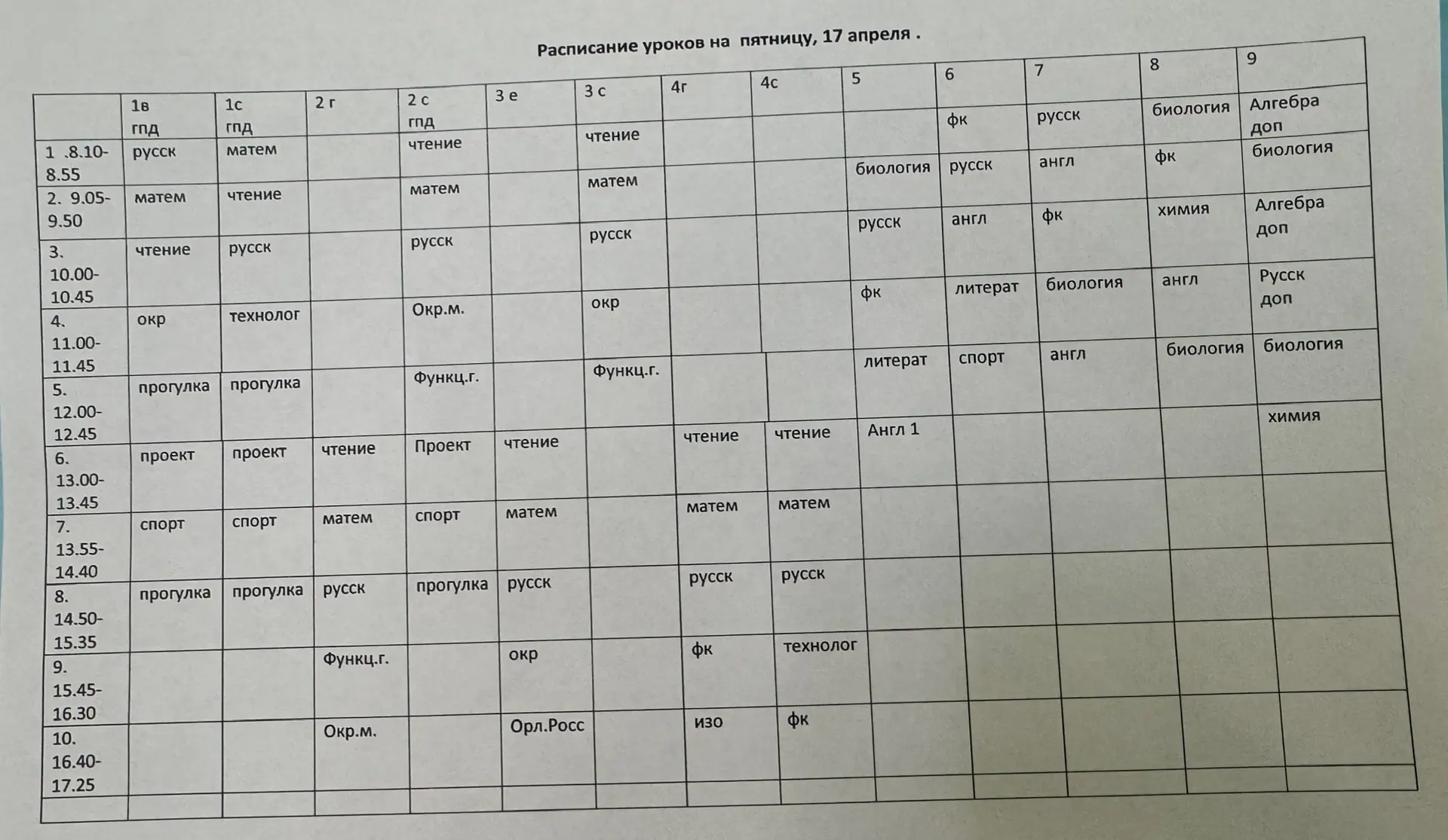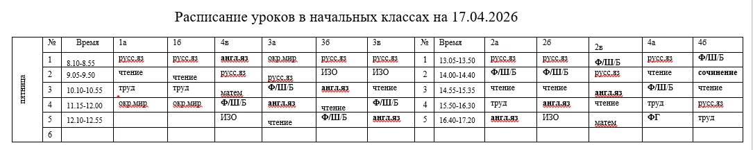 Расписание на 17 апреля