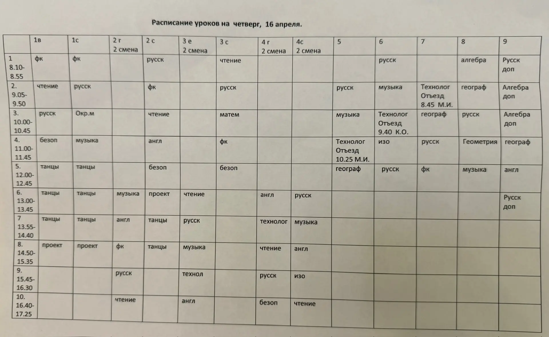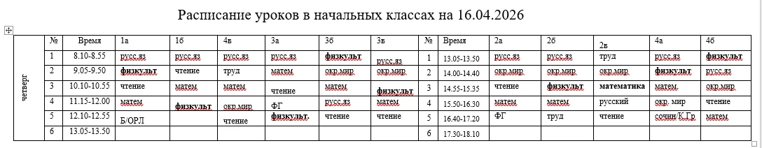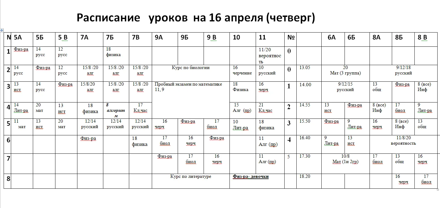 Расписание на 16.04, четверг