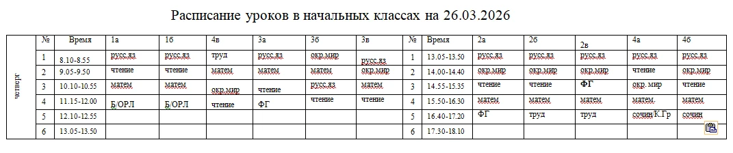 Расписание на 26 марта