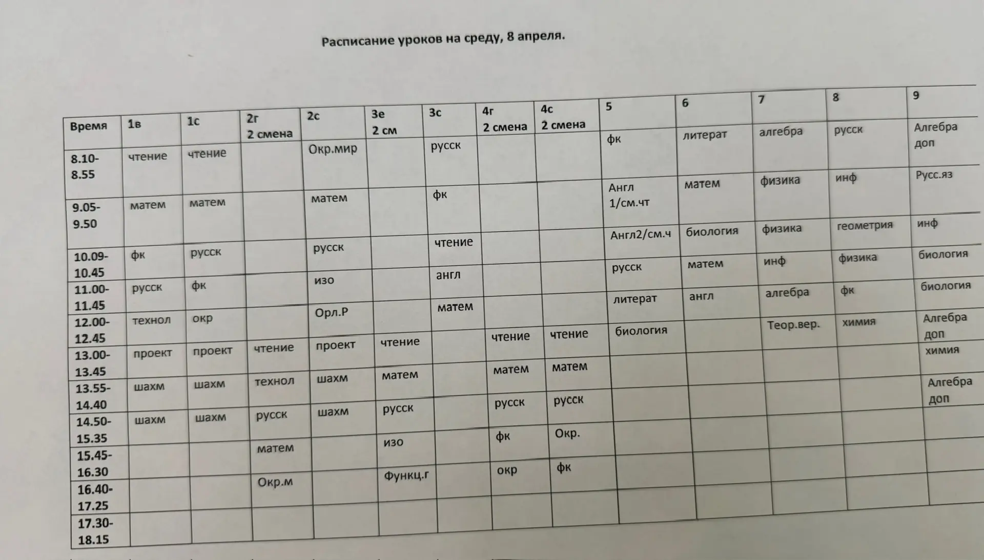 Расписание на 8 апреля