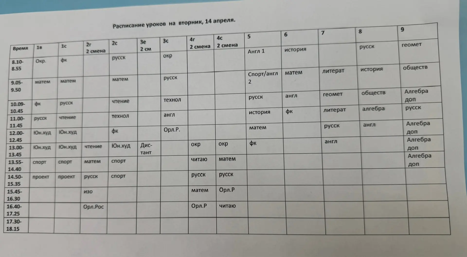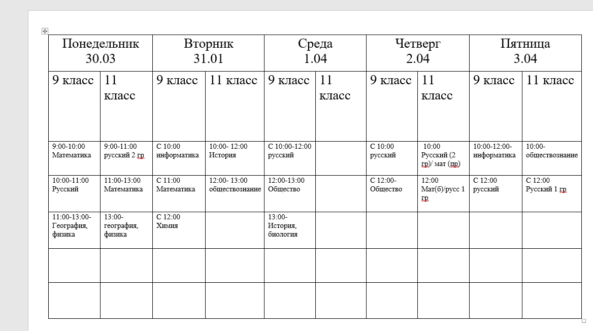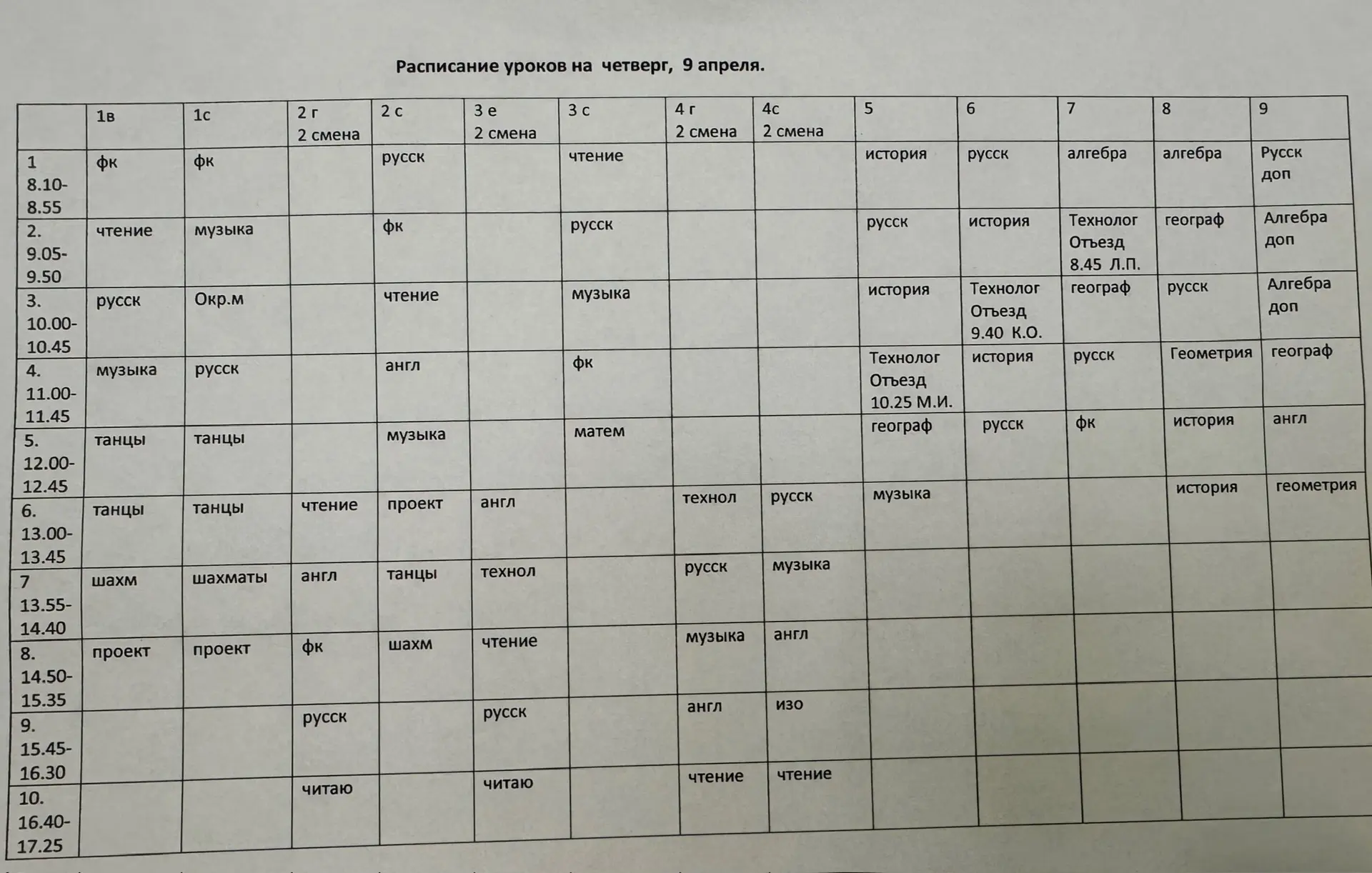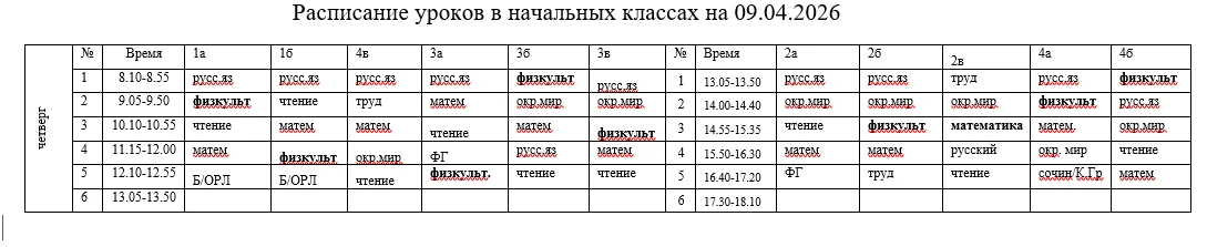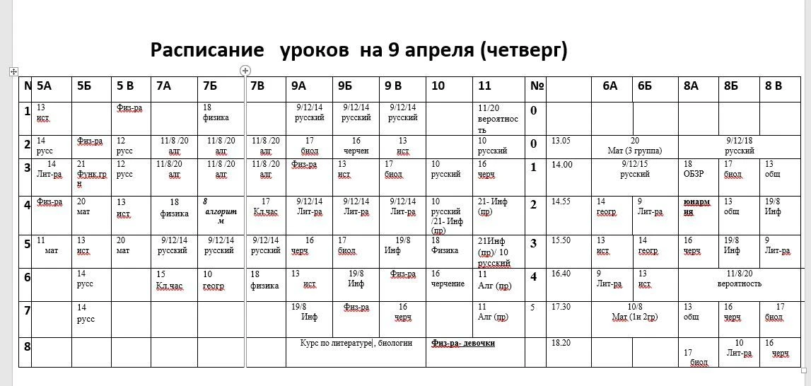 Расписание 9 апреля