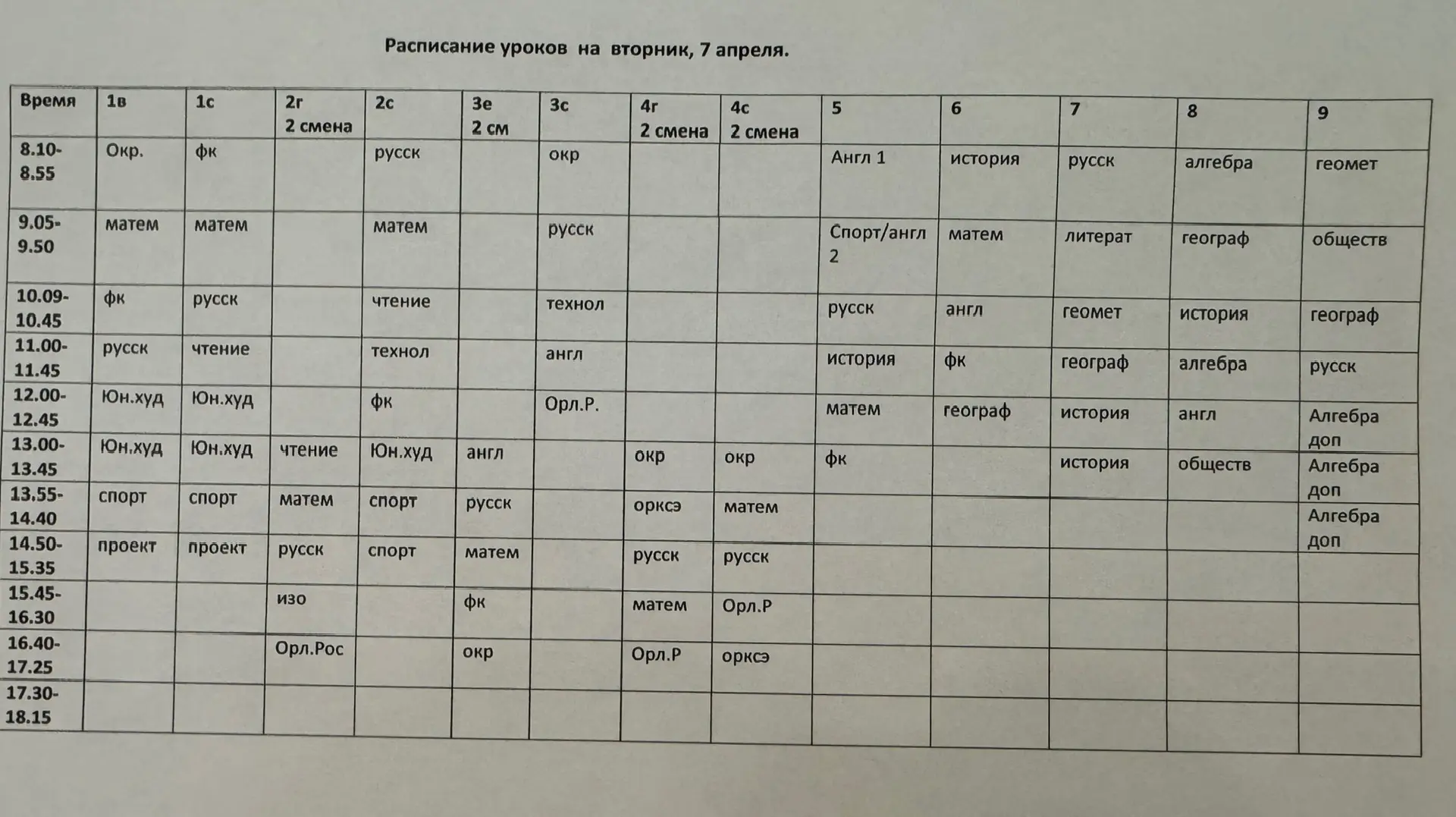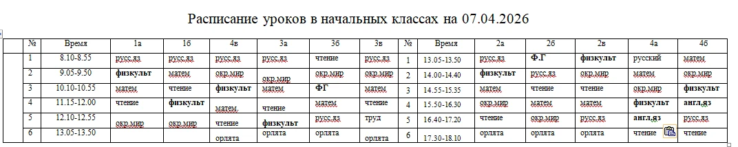 Расписание на 7 апреля