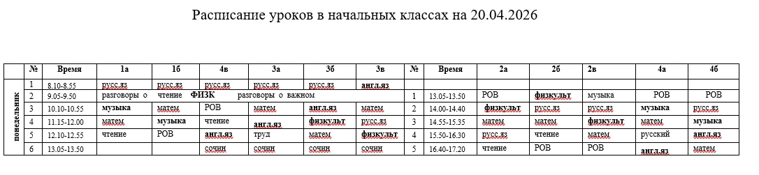 Расписание на понедельник, 13 апреля