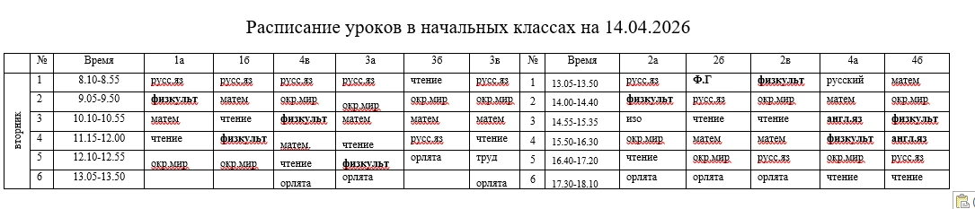 Расписание на 14 апреля