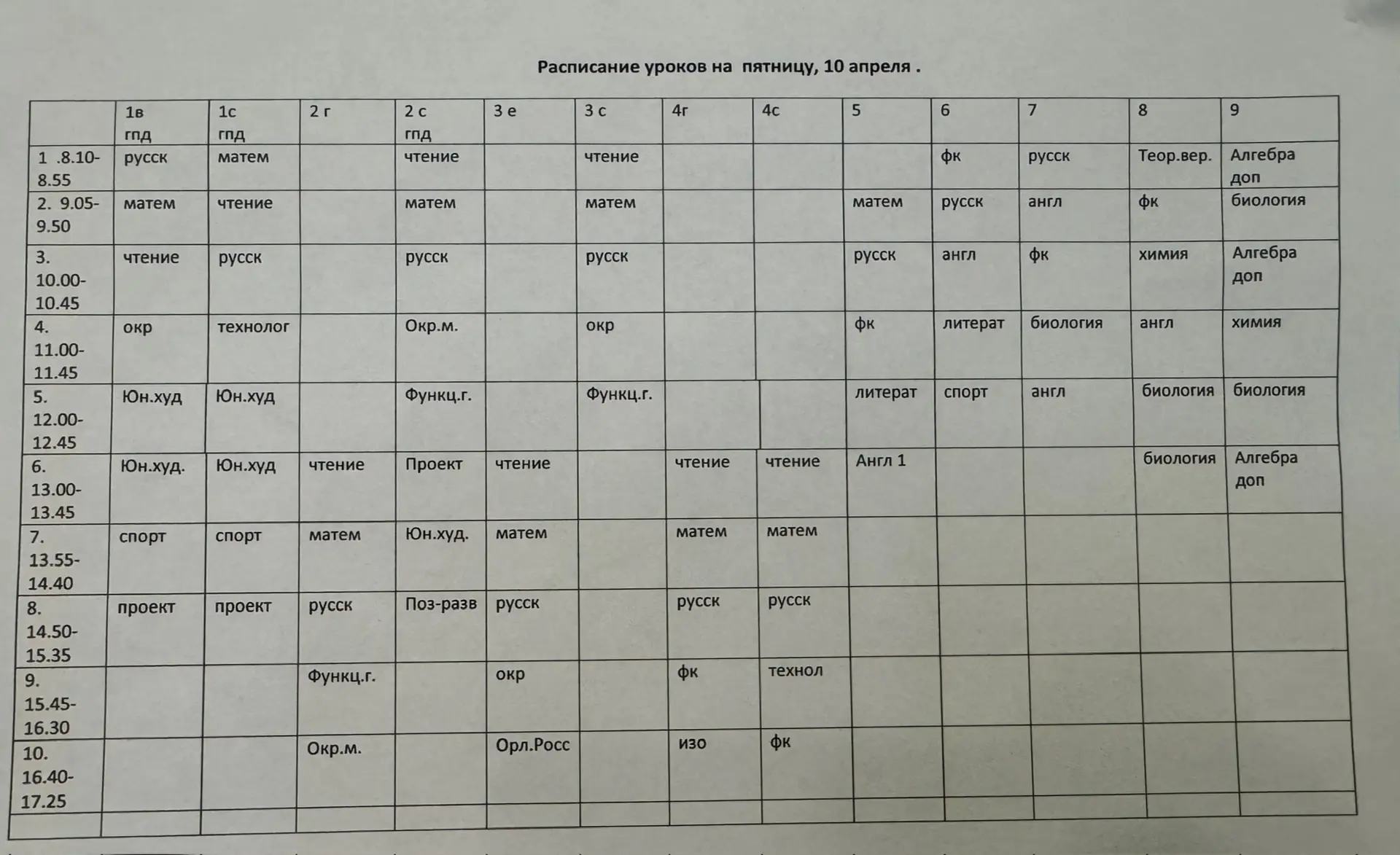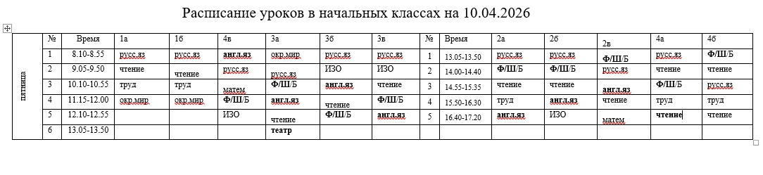 Расписание на 10 апреля