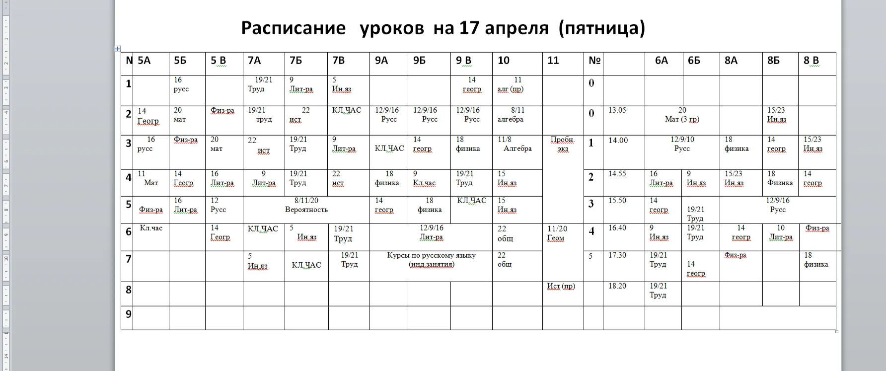 ИЗМЕНЕНИЯ в расписании на 17.04