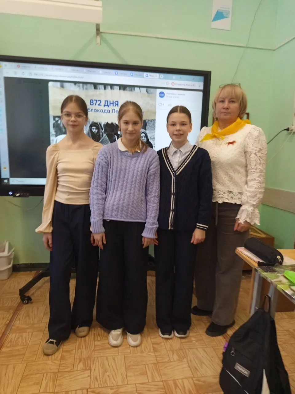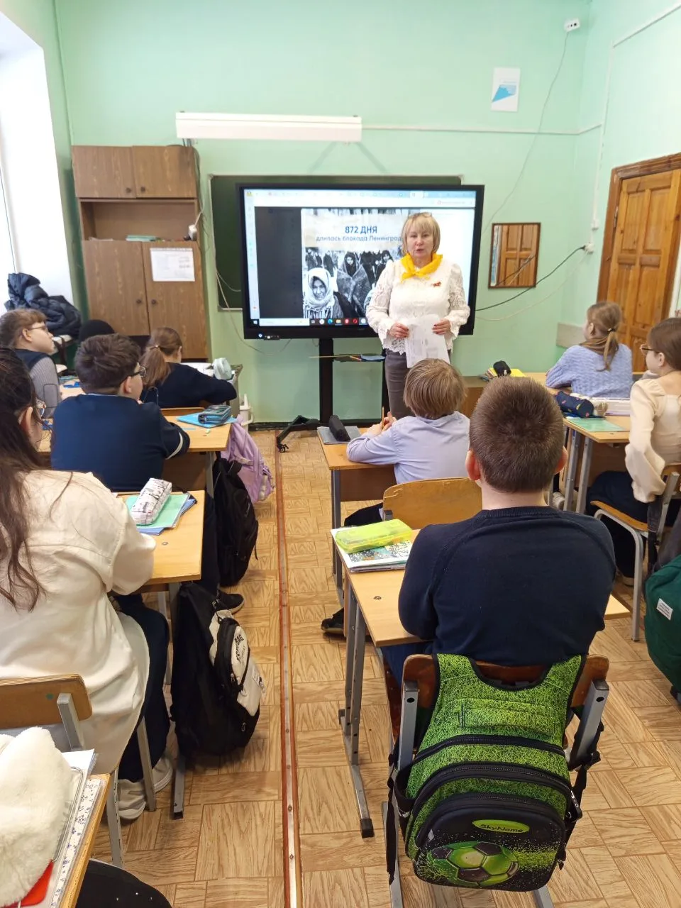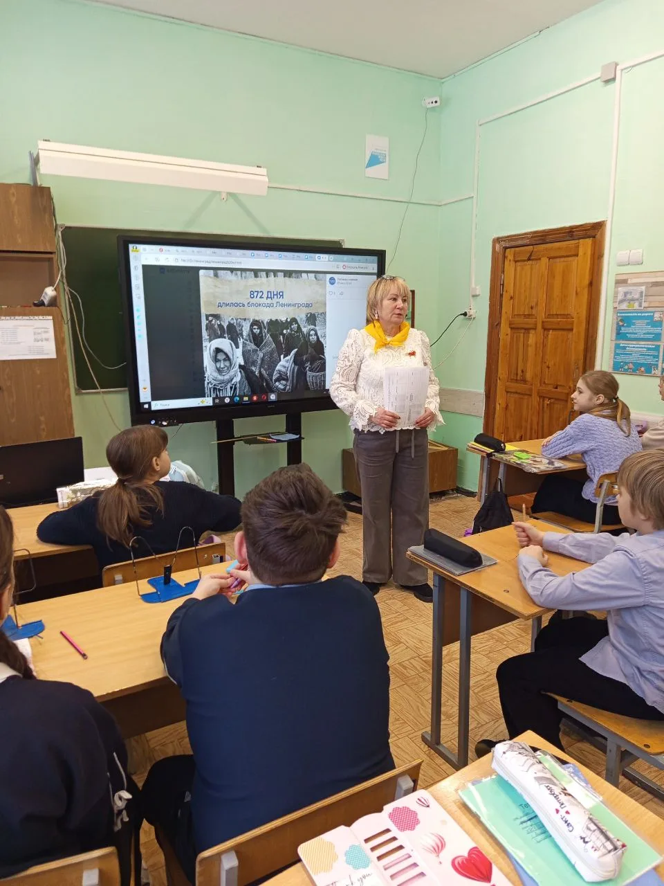 В преддверии этой даты советник директора по воспитанию Сафронова Татьяна Анатольевна провела в 5 В классе мероприятие «Кадры из жизни блокадного