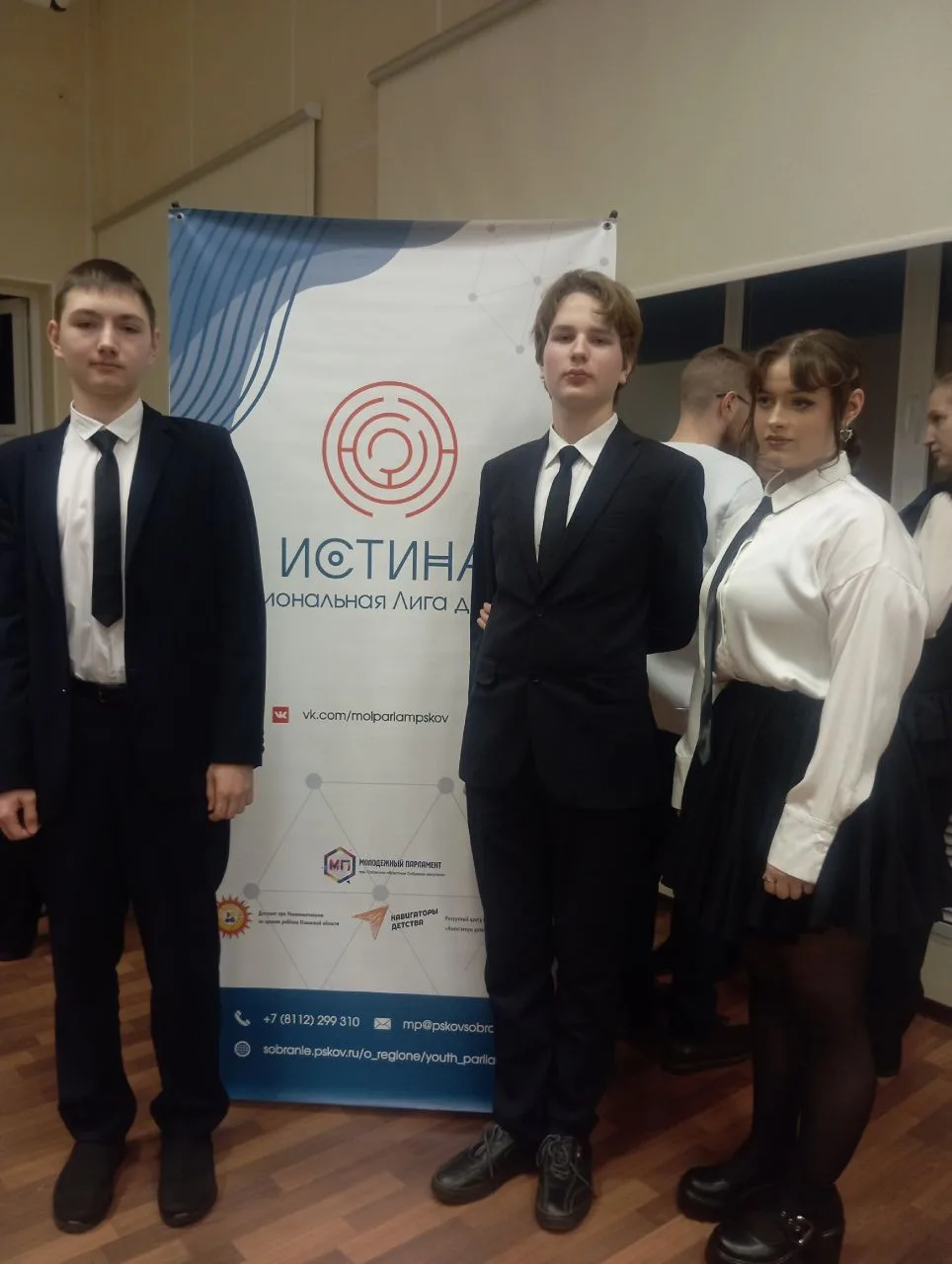 В нашем городе два дня подряд проходила Лига дебатов среди школьников. Нашу школу представляло две команды "7 власть" и "Апологеты" - это был первый опыт участия в подобном мероприятии для обоих команд. Во второй тур прошла команда девятиклассников. Игровые батлы были в течении четырех часов, но несмотря на усталость - наше трио: Ратмирова Дарья - 1 спикер, Гвардин Михаил - 2 спикер и Аверьянов Макар - 3 спикер обошло всех соперников и получило визитную карточку во второй этап. Пусть каждый раунд будет для вашей команды вдохновляющим и принесет новые победы! Болеем за вас и желаем успехов!