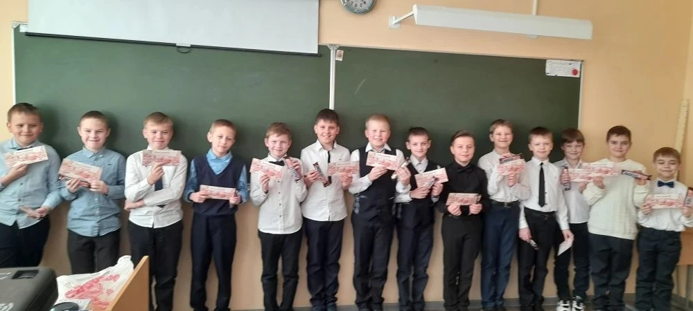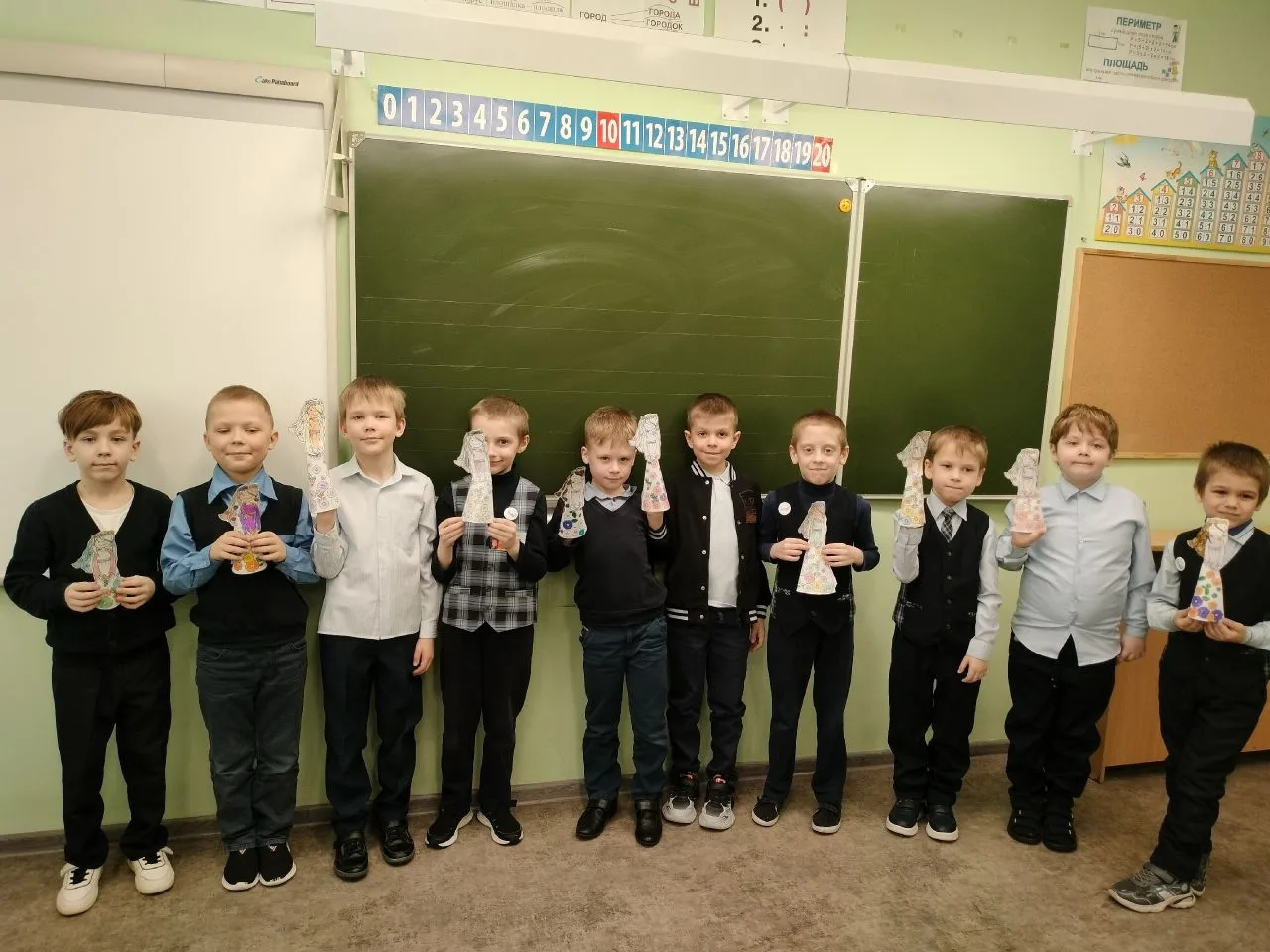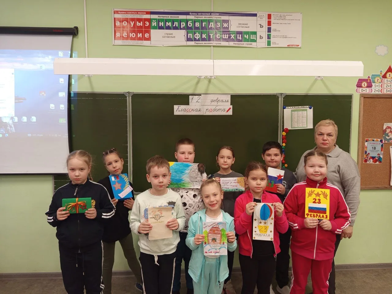 В предверии праздника Дня защитника Отечества девочки 3 а класса поздравили своих одноклассников. Прочитали красивые стихи и подарили сертификаты на мастер класс в "Арт Этаж" по написанию рисунка.