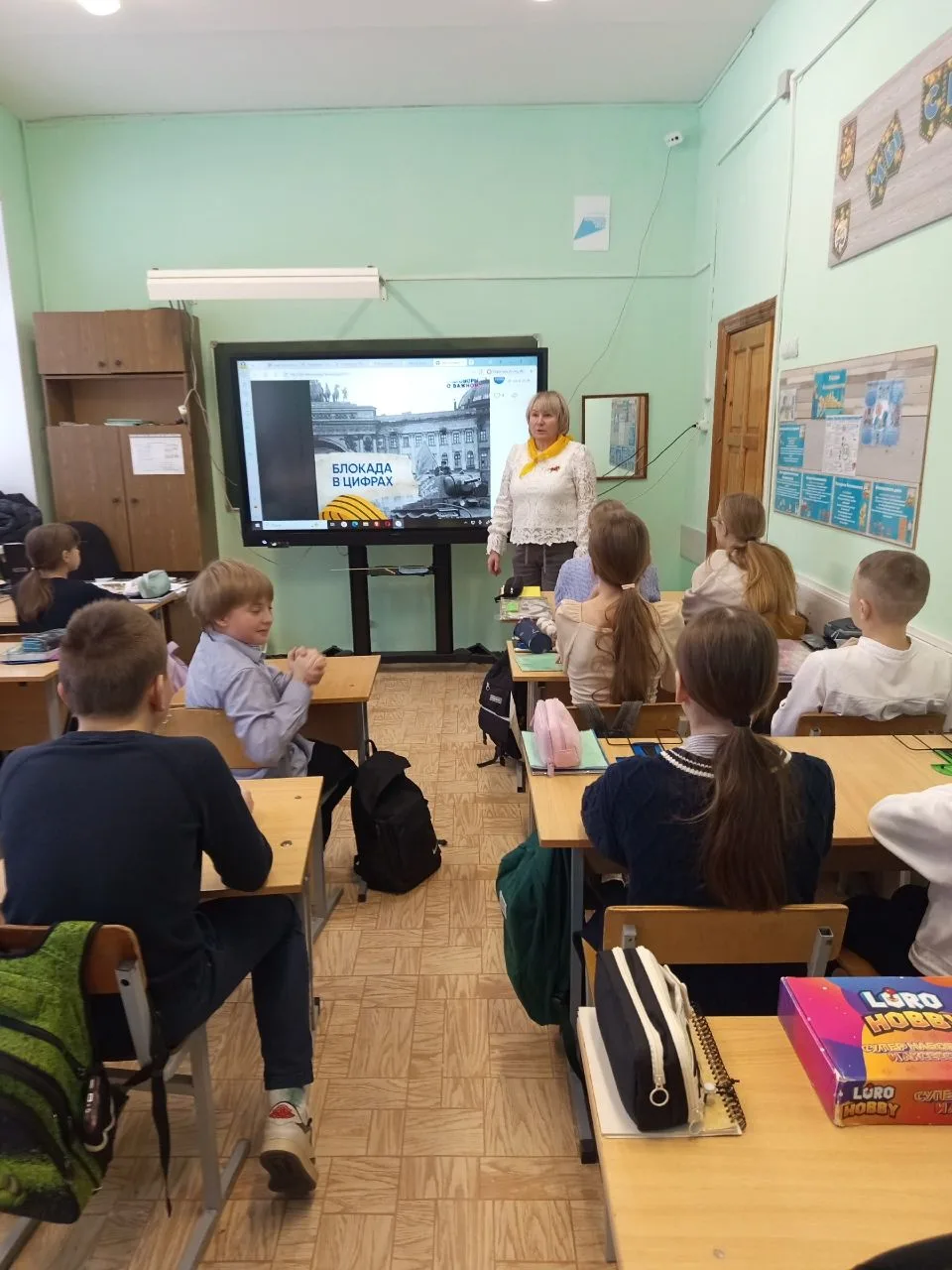 В 1 В классе прошел классный час : «Ленинград: 900 дней мужества» Дети узнали о тяжелых днях блокады. Классный руководитель Дмитриева Елена Владимировна провела это занятие и ребята приняли участие в акции "Мы помним, Ленинград"
